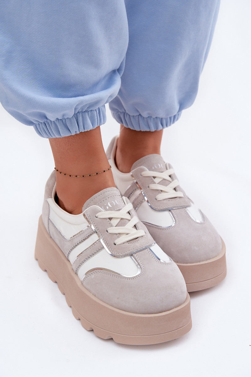 dalla pelle scamosciata Scarpe modello sneakers con una piattaforma GOE TT2N4052 Colore bianco