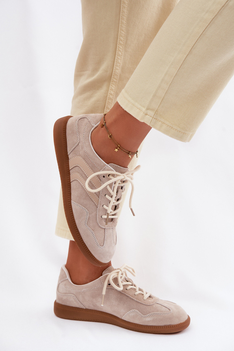 Pelle dalla pelle scamosciata Scarpe modello sneakers Basso per le donne beige Perinae