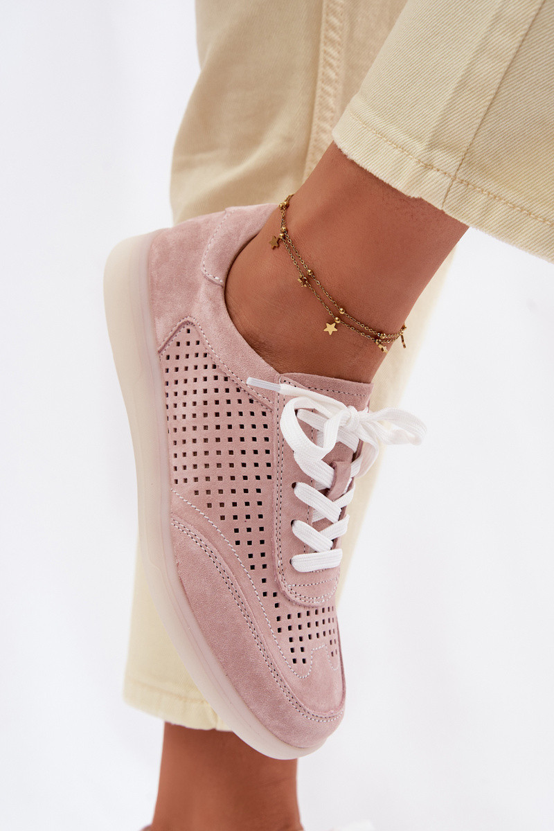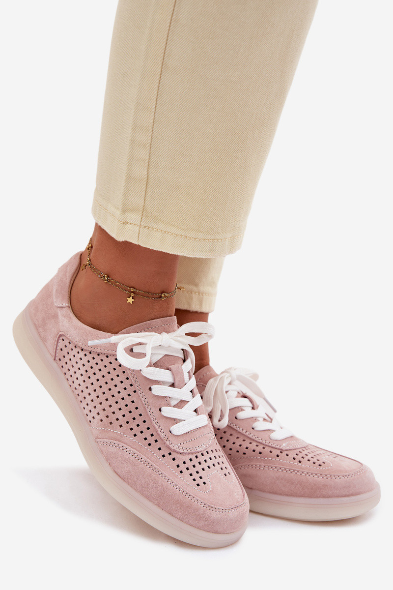 Pelle dalla pelle scamosciata Scarpe modello sneakers Femminile con elementi traforati colore rosa Almora