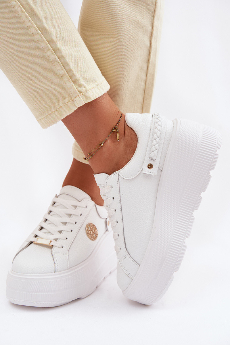 Scarpe sportive in pelle da donna con piattaforma D&A LR61-7095 bianche