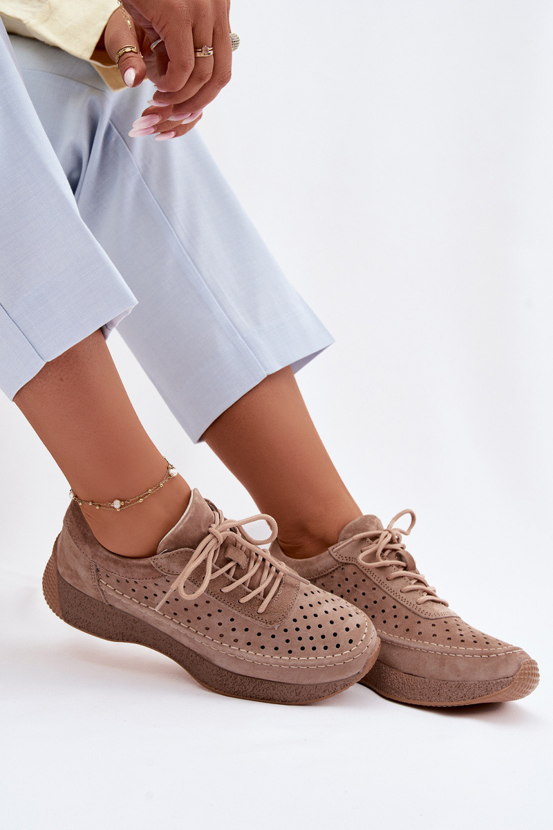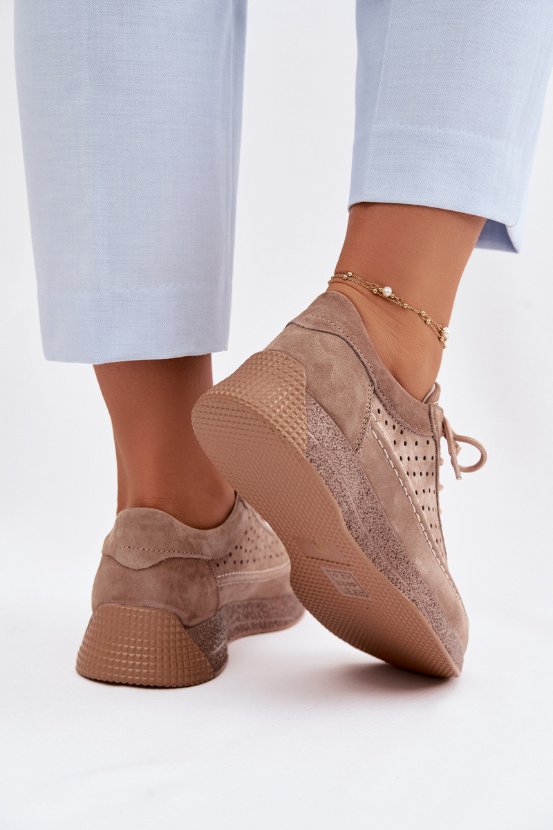 Pelle scarpe Scarpe modello sneakers Femminile con elementi traforati Sergio Leone SP-013 colore marrone
