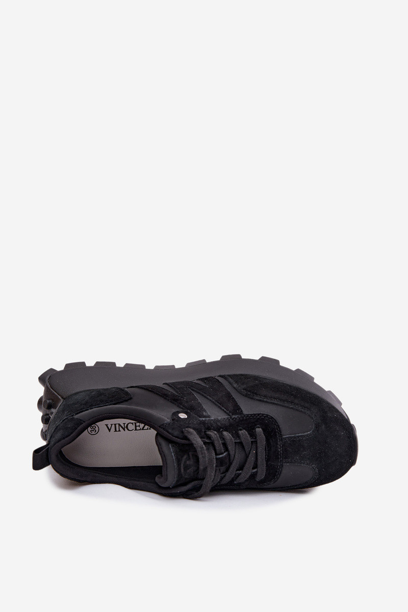 Pelle dalla pelle scamosciata Scarpe modello sneakers Femminile con una piattaforma Vinceza 41520 colore nero