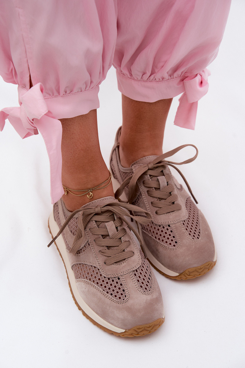 Scarpe sportive con elementi traforati in suede sintetico color avorio Gelina