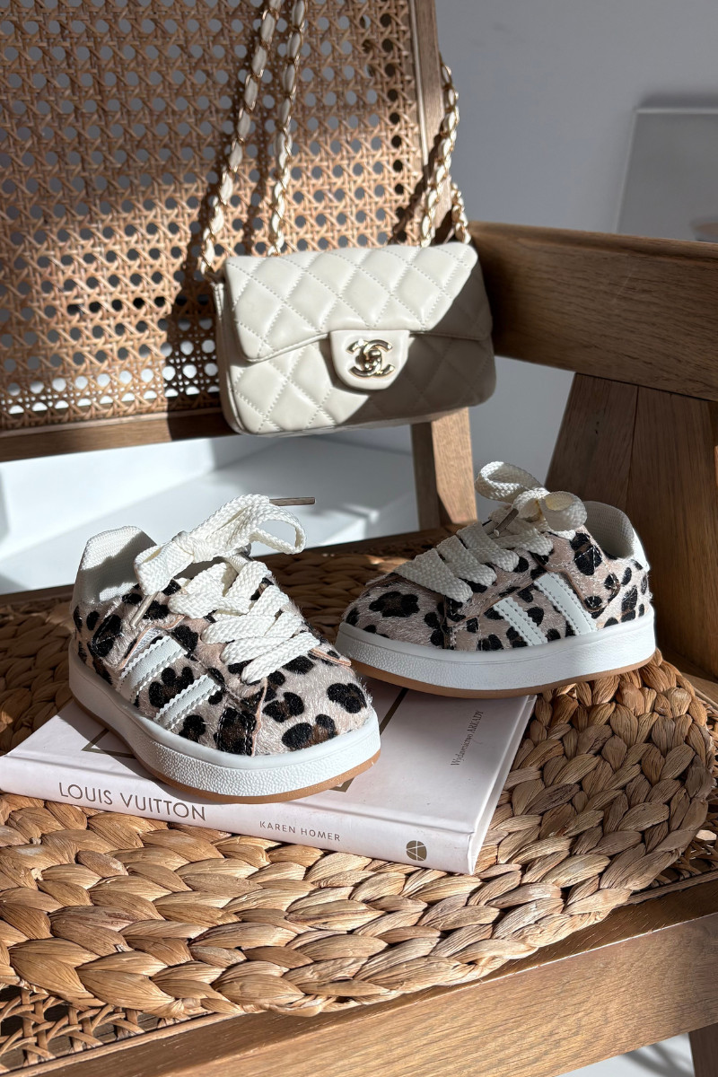 Sneakers per bambini con motivo in pelle di leopardo, color sabbia, Amelle