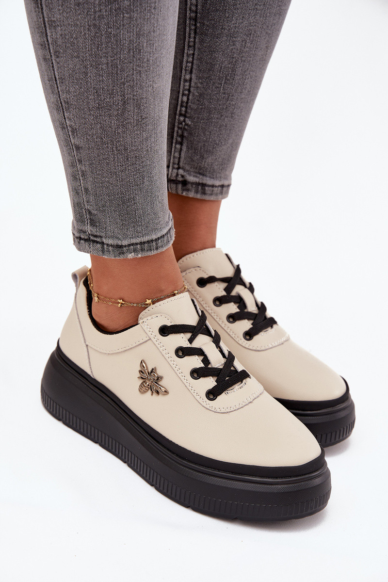 Pelle scarpe Femminile con una piattaformaPrzypinką Vinceza 41495 beige