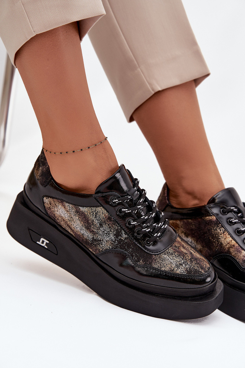 Pelle Scarpe stringate Femminile con una piattaforma Artiker 57C2042 Nero e-colore dorato