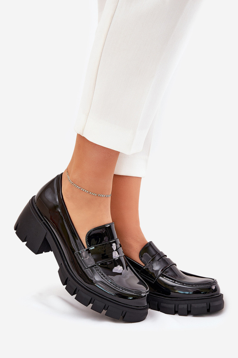 Scarpe nere da donna Felonith con effetto vernice su tacchi massicci