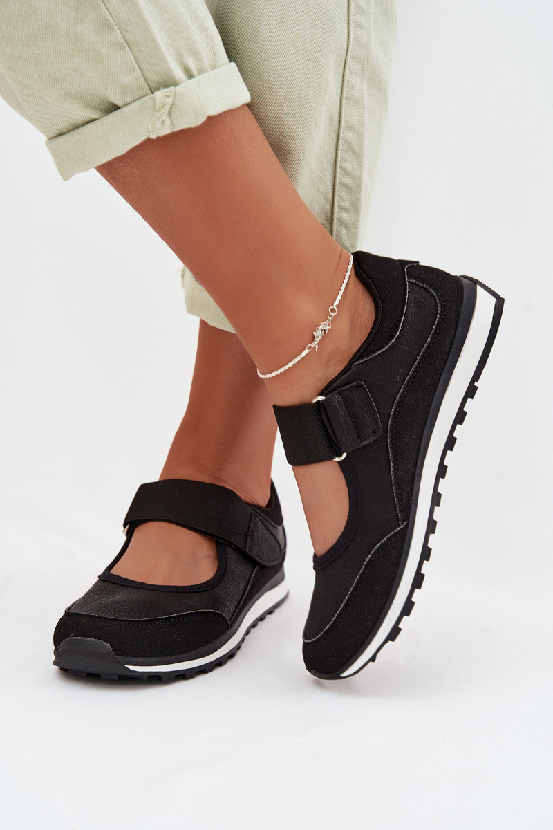 Scarpe dallo stile sportivo Femminile con chiusure adesive colore nero Aveliette