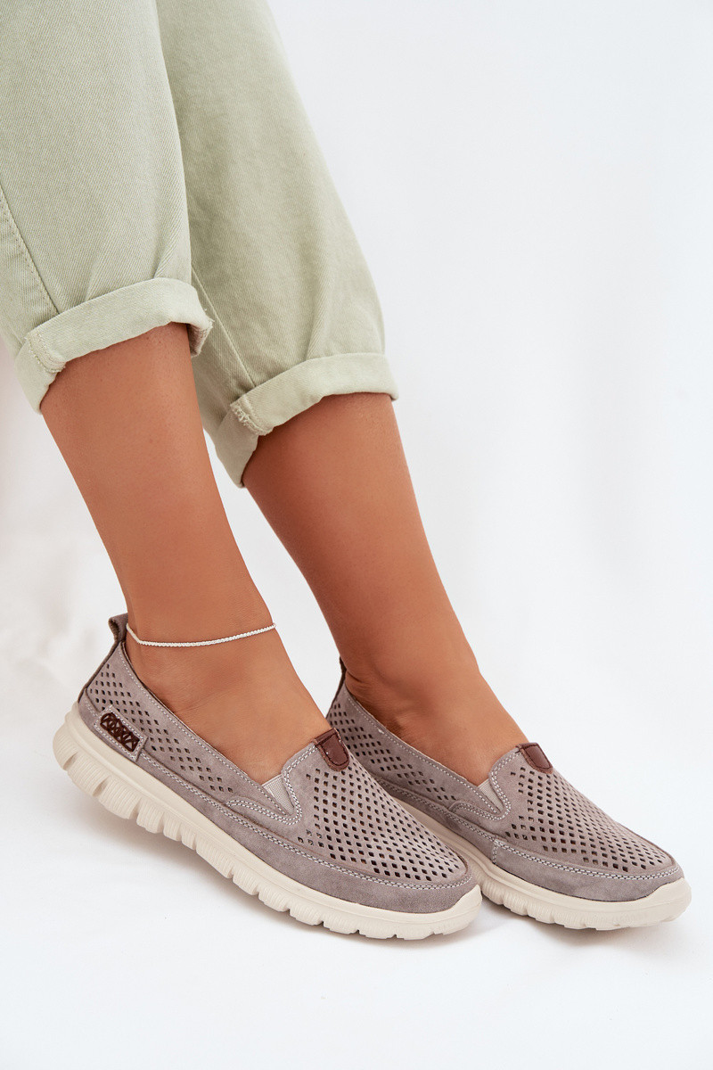 Ravinette scarpe grigie con elementi in perforazione in camoscio naturale