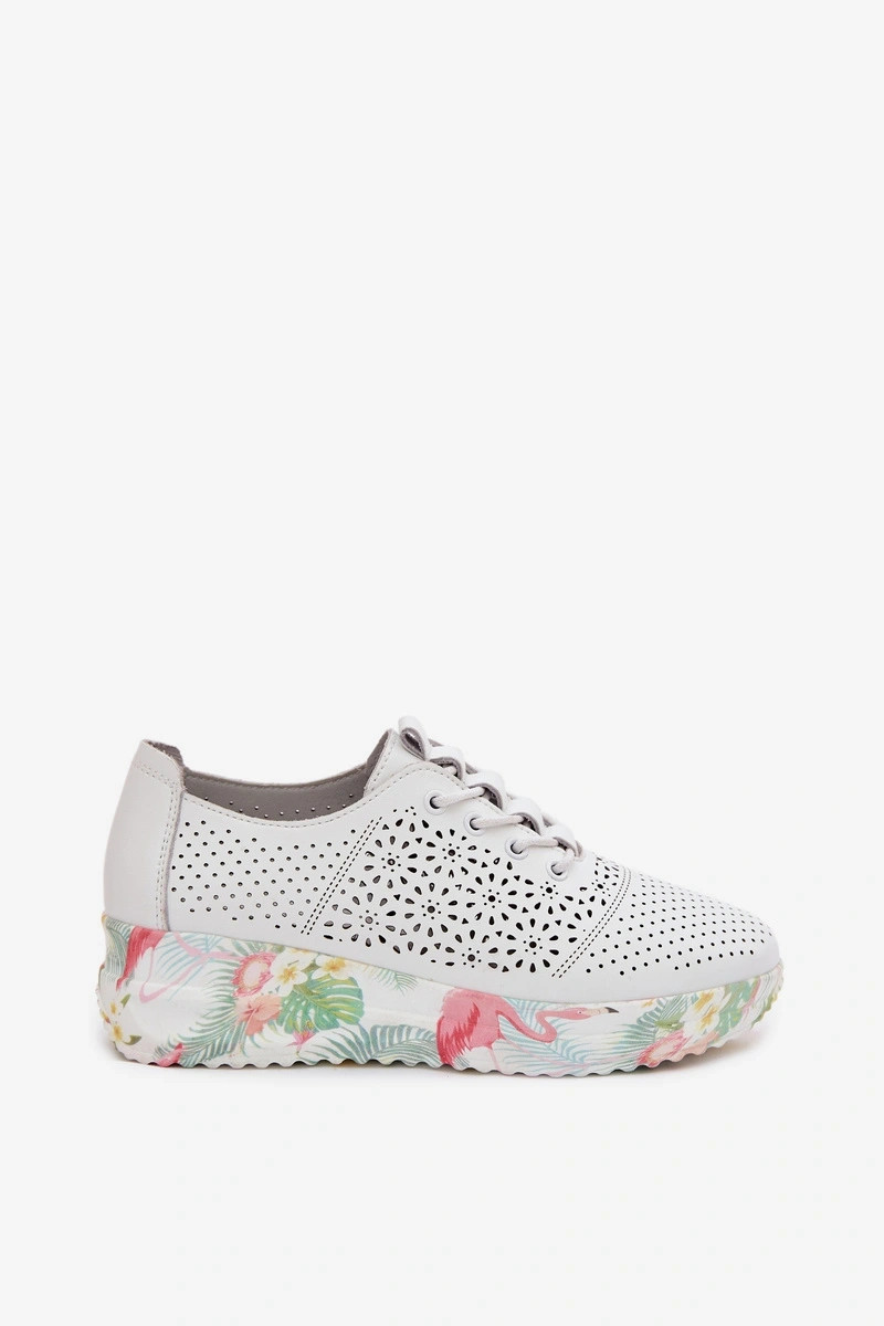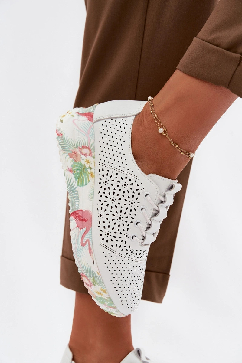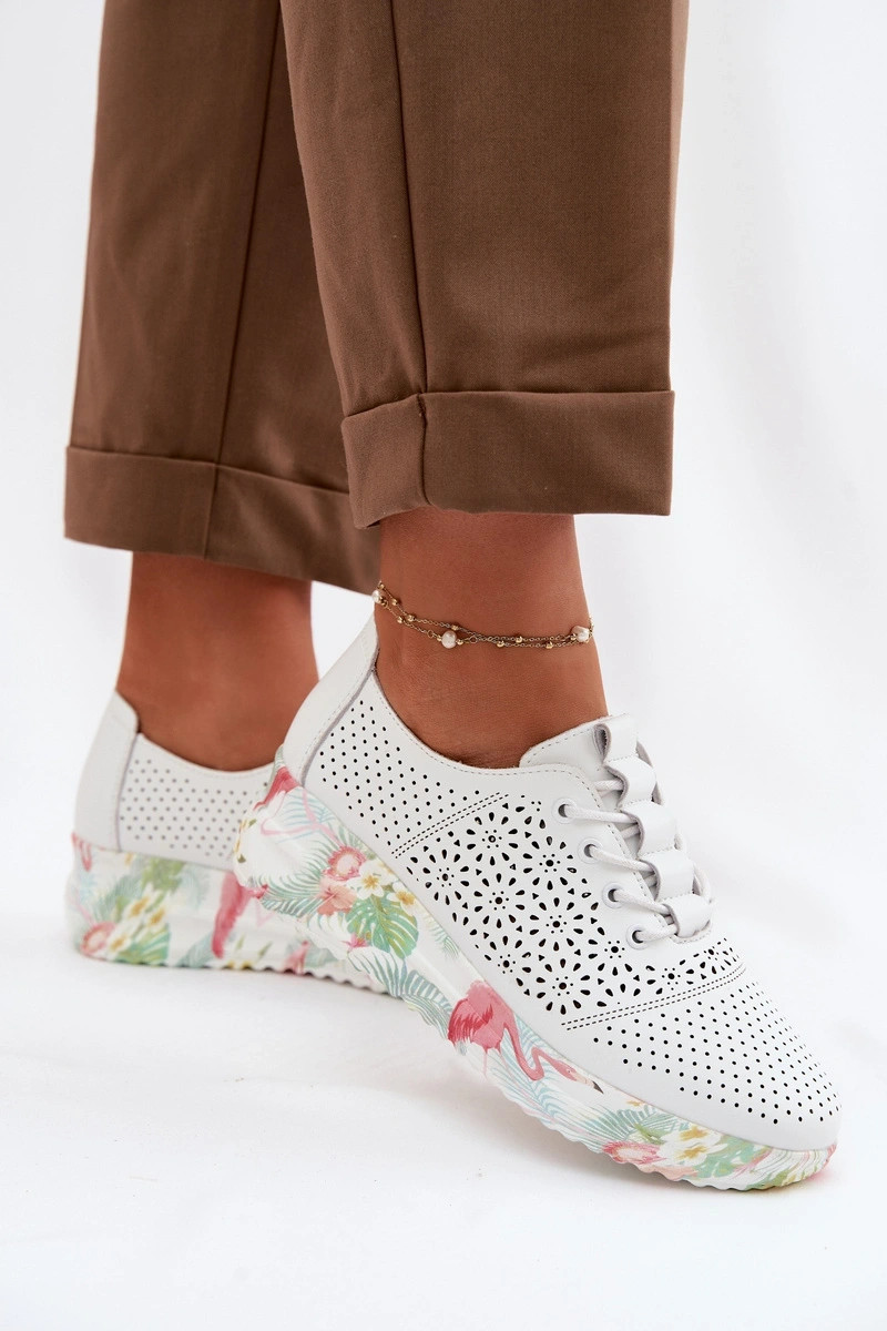 Scarpe in pelle da donna con elementi traforati Telina color bianco