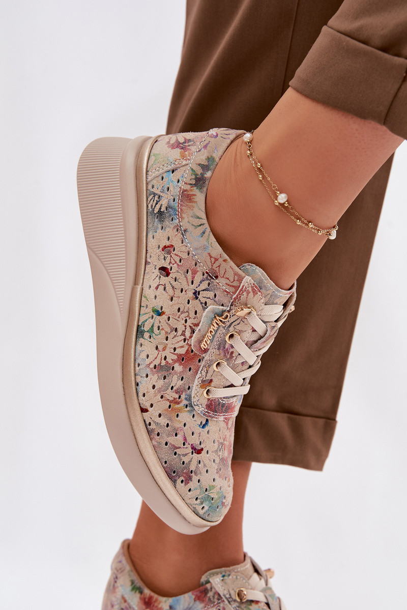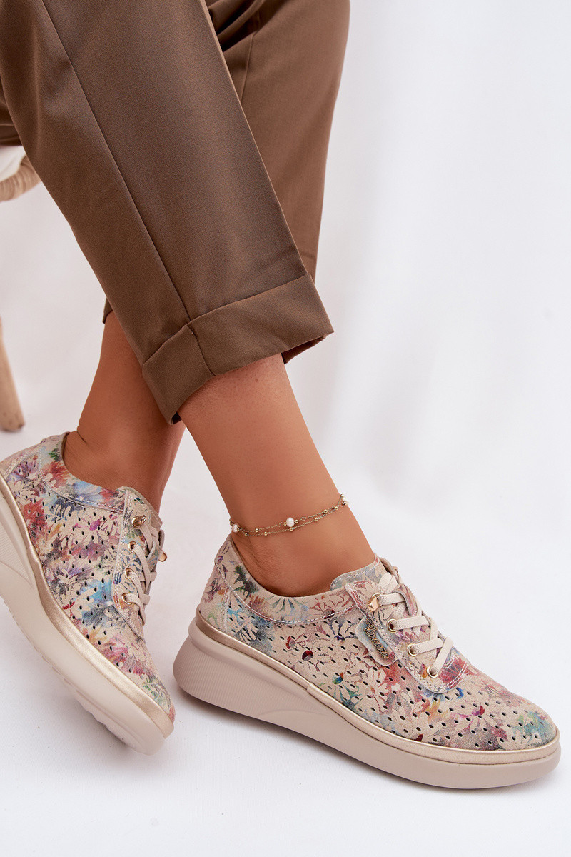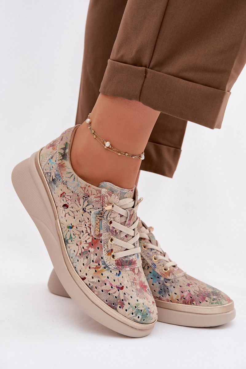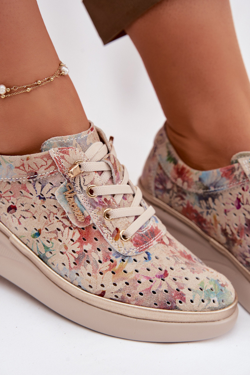 Pelle scamosciata traforata scarpe Femminile Vinceza 79603 beige