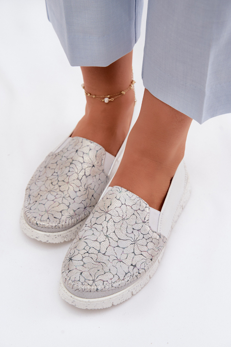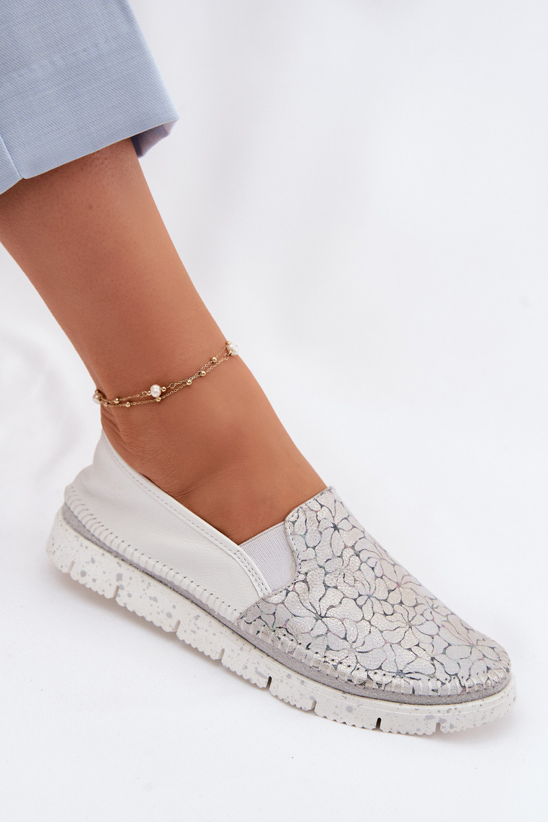 Scarpe da donna in pelle chiuse Tai turiciejka 03512-70 color bianco-argento