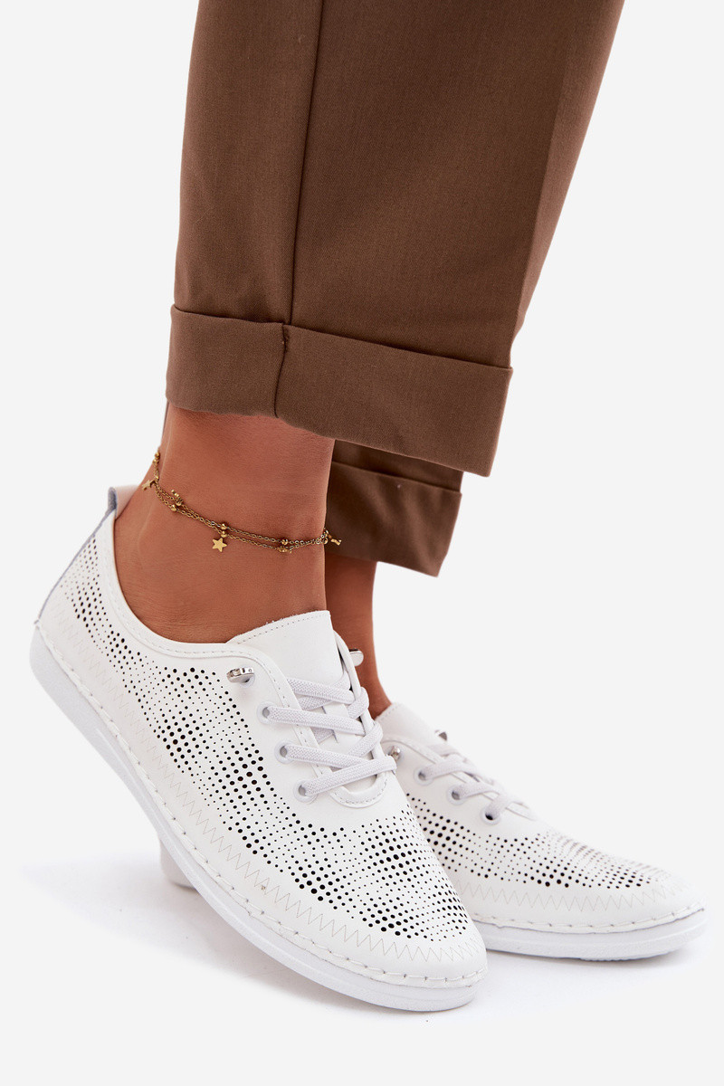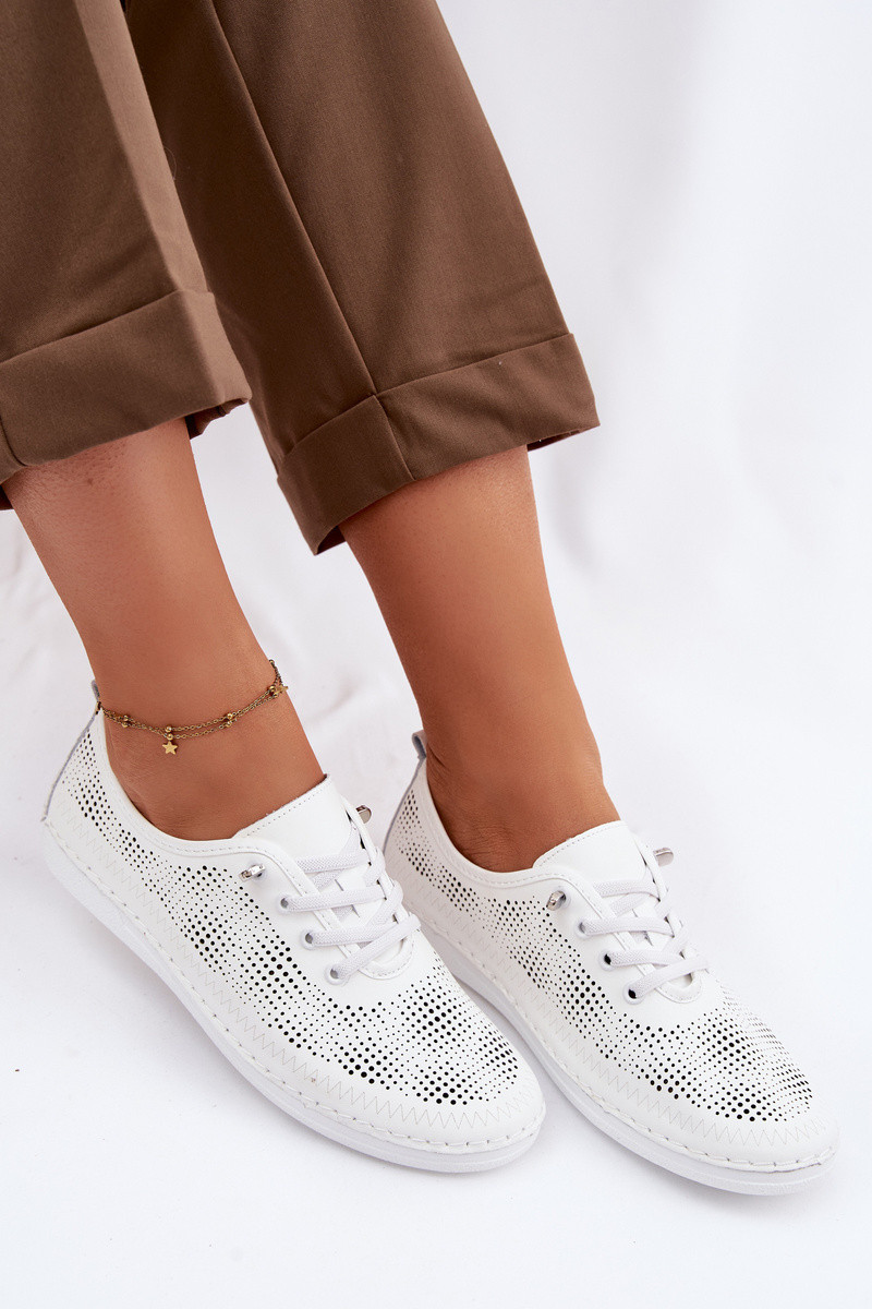 Scarpe in pelle donna con elementi a traforo S.Barski LR61-7083 bianche