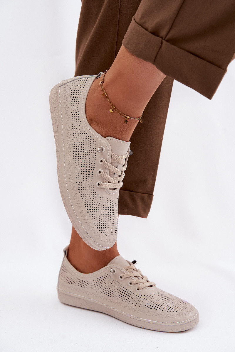 Pelle con elementi traforati scarpe Femminile S.Barski LR61-7083 beige