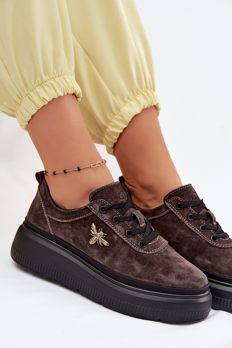 Pelle dalla pelle scamosciata scarpe Femminile con una piattaforma Vinceza 41523 CzekoladoAe