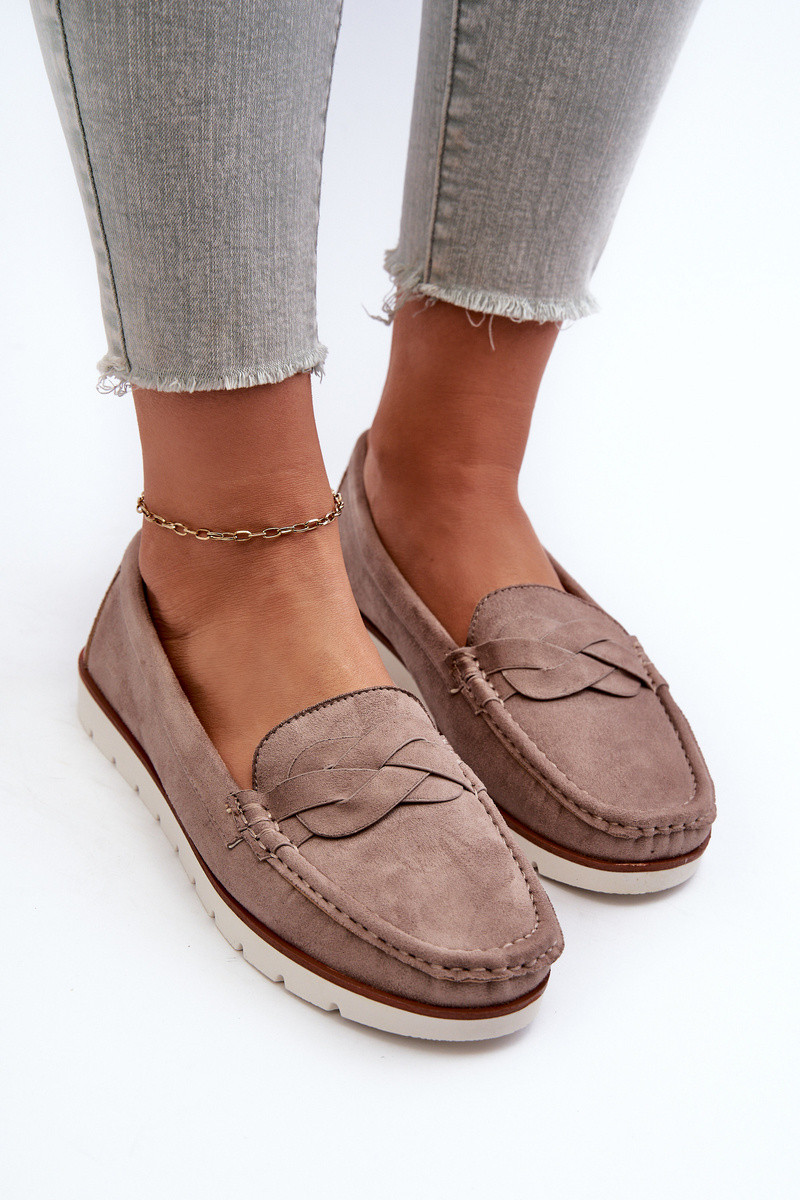 Mocassini in suede artificiale da donna, color sabbia scuro Nestalia