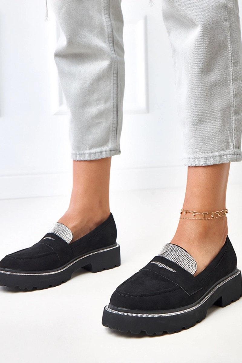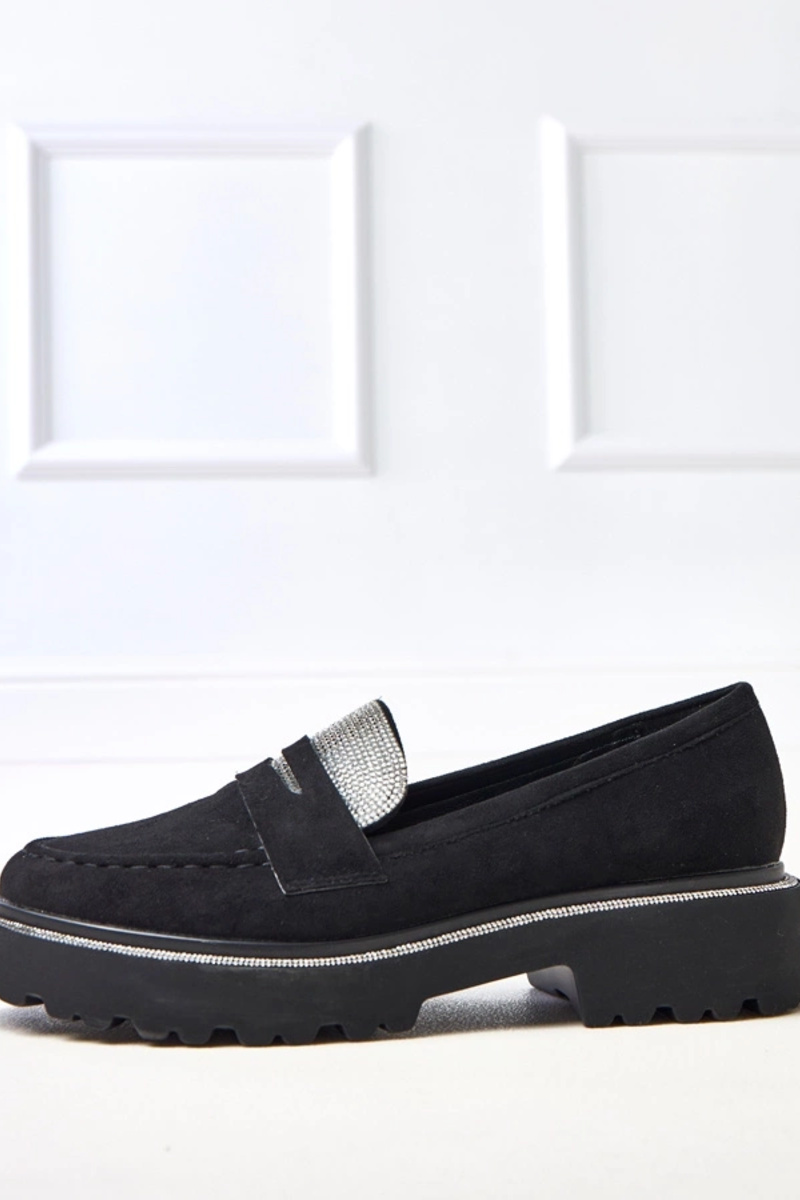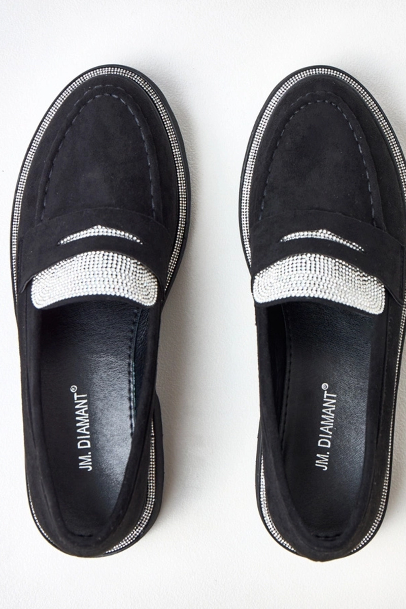 Mocassini neri in suede sintetico decorati con zirconi Kloren