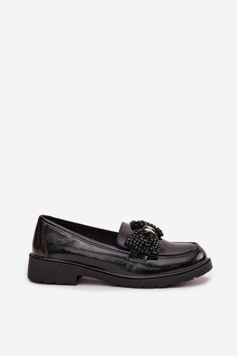 Mocassini laccati Femminile con nastri S.Barski HY52-319A colore nero