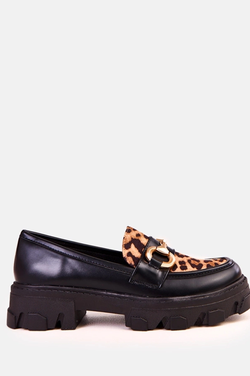 Mocassini neri con accento a stampa leopardata e decorazione dorata Ruben