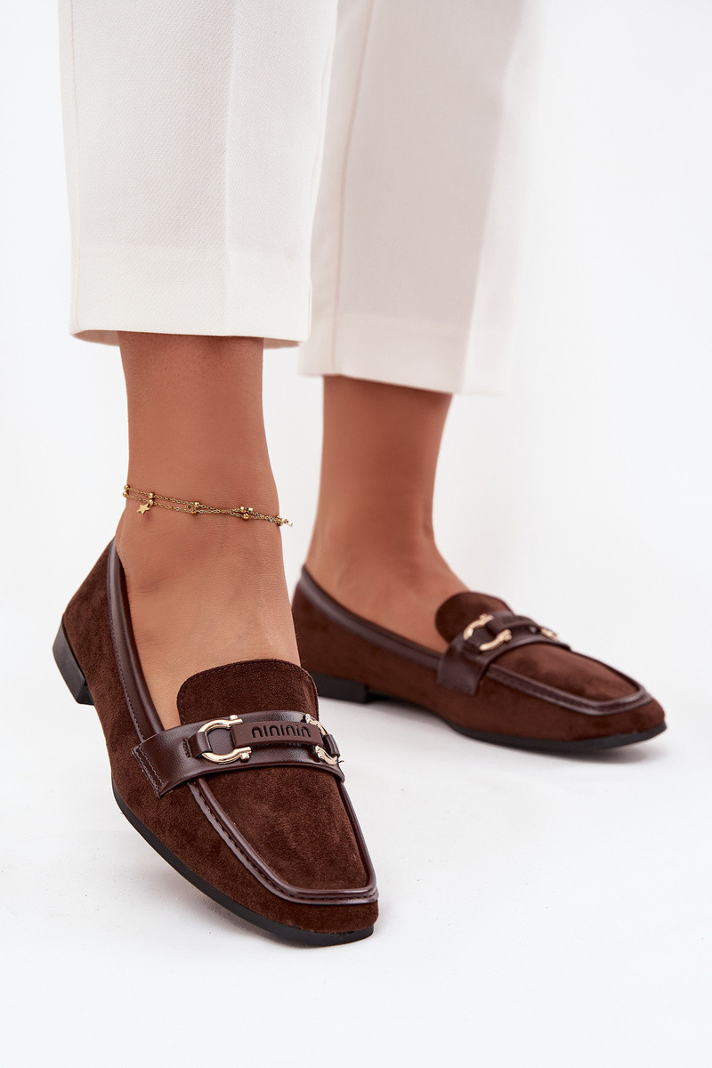 Mocassini da donna con elementi decorativi, colore cioccolato Evelora