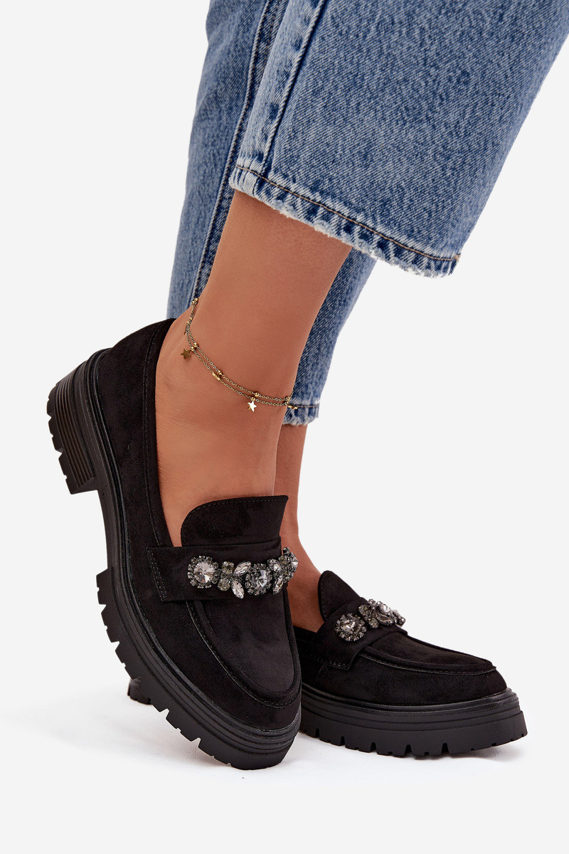Mocassini da donna con borchie brillanti in ecopelle neri Lavisse