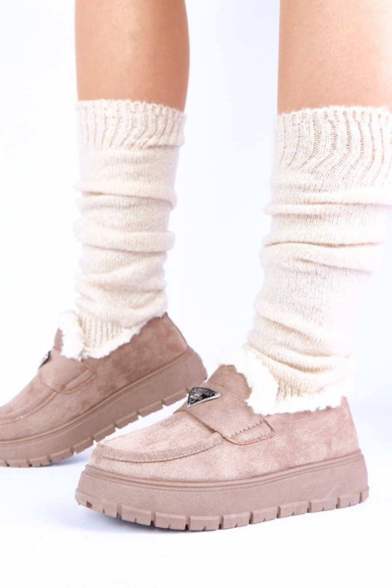 Mocassini color sabbia scuro con zeppa e pelliccia Kirby