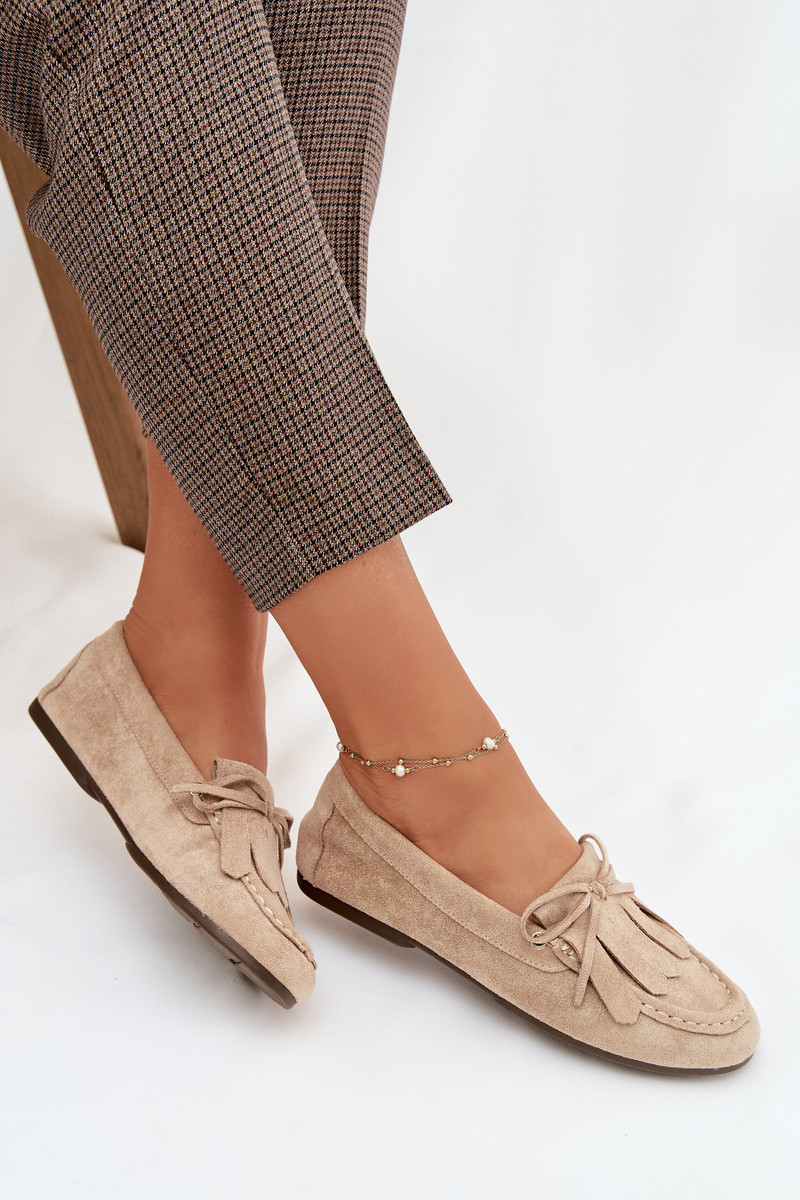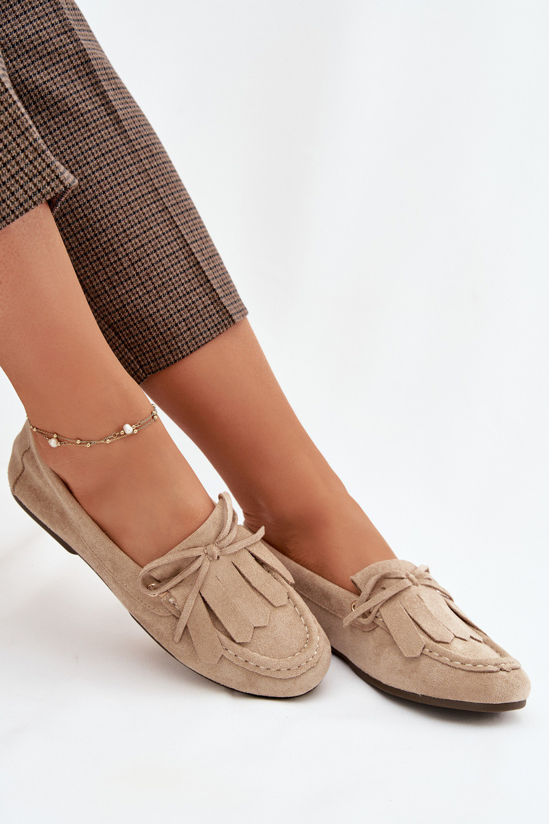 Mocassini per donne sabbia Glorina con dettagli eleganti e frange