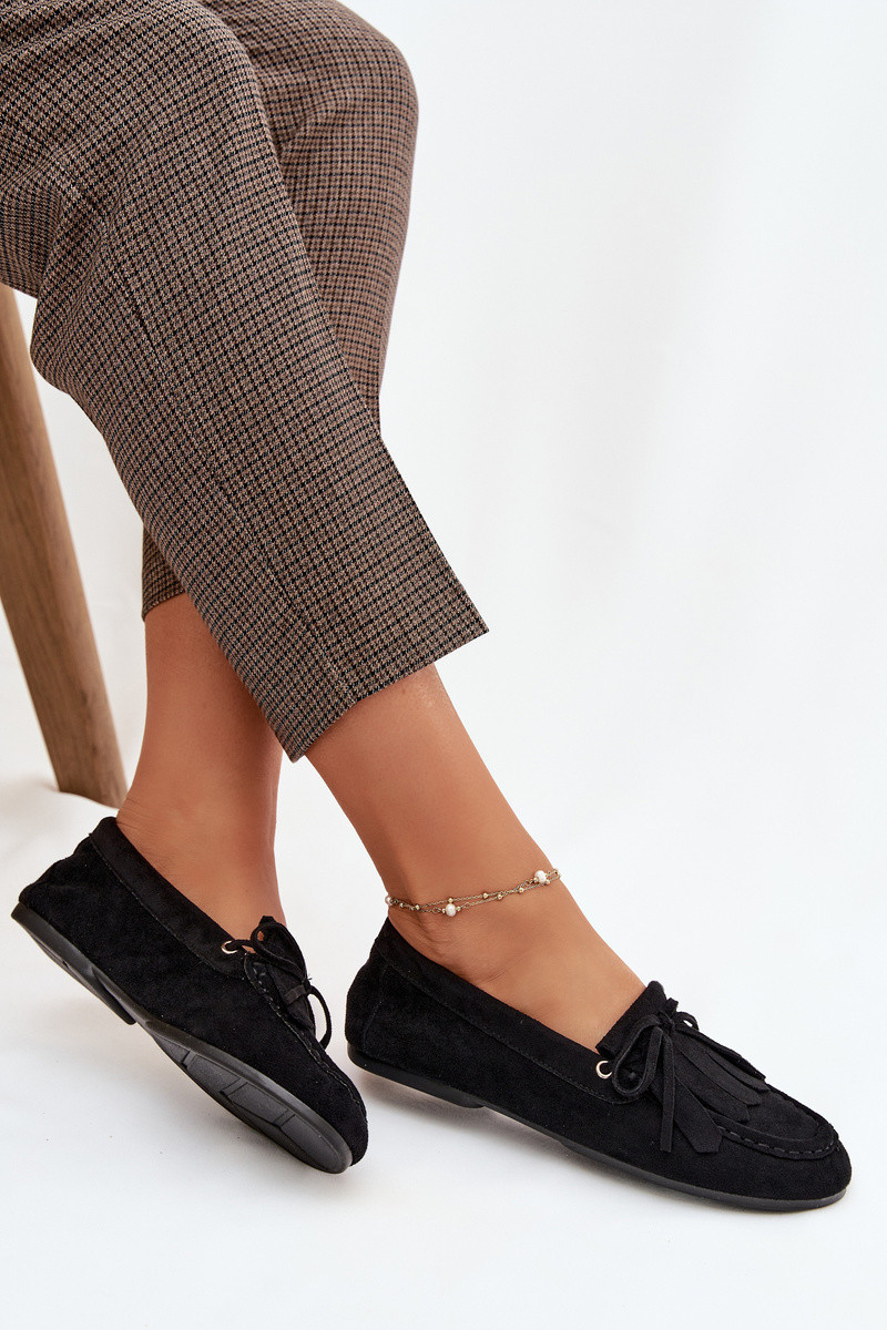 Mocassini per donne neri Glorina con dettagli eleganti e frange