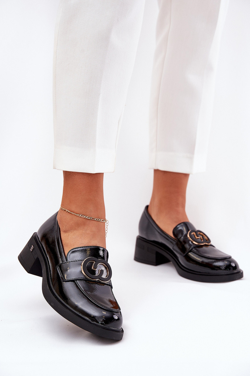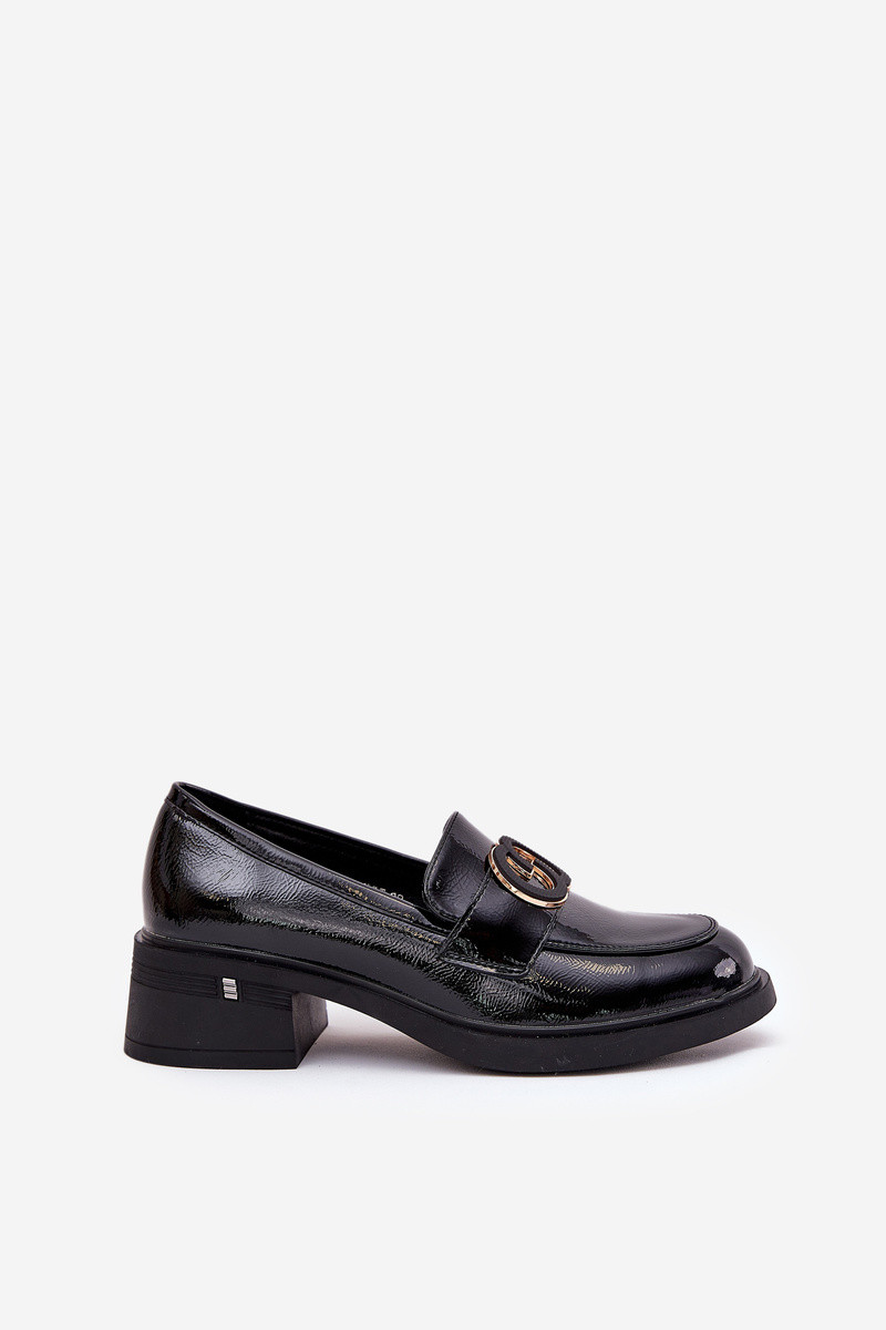 Mocassini in pelle verniciata con tacco Vinceza 18102 neri