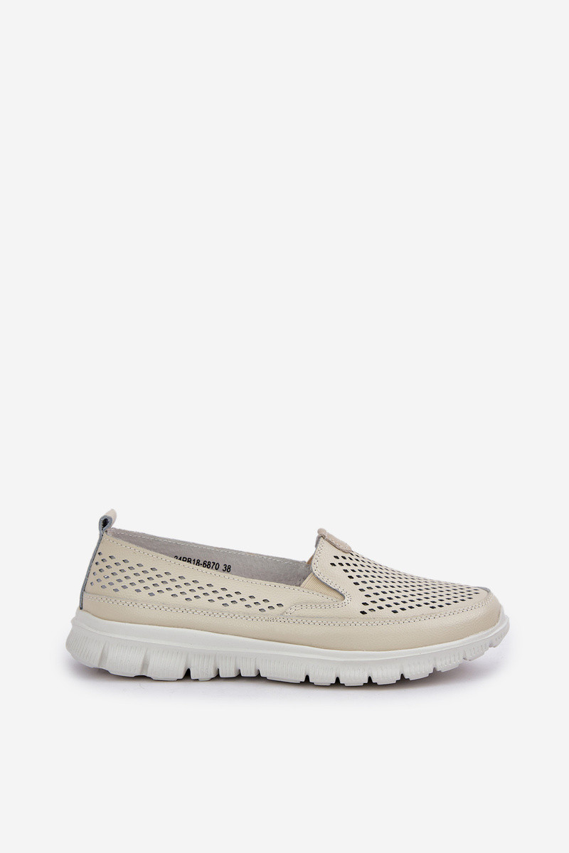 Pelle con elementi traforati Mocassini con plateau da donna beige Tanelora
