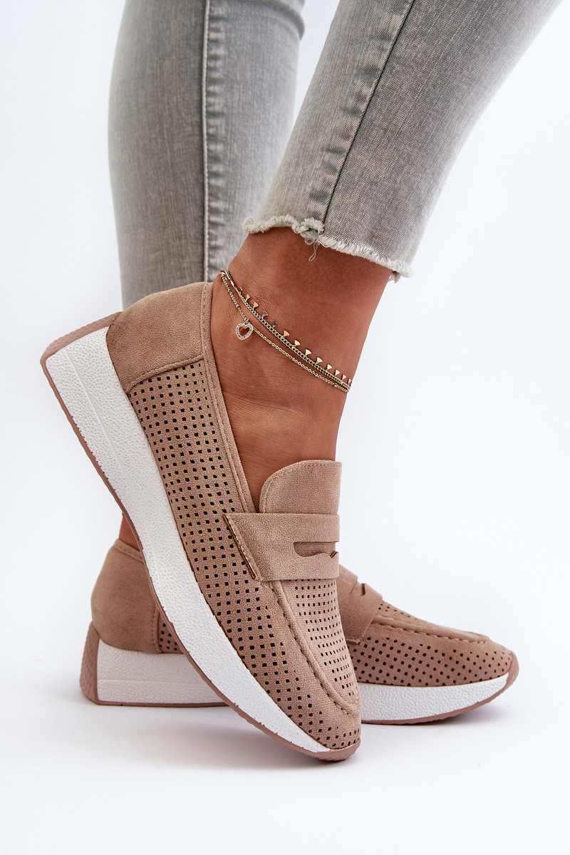 Mocassini con plateau da donna in ecopelle scamosciataoAe beige Inesqua