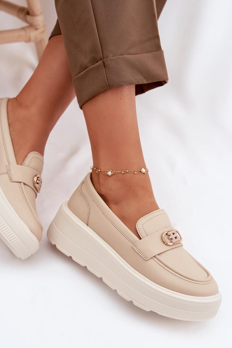 Mocassini da donna con piattaforma in pelle Vinceza 39974 color sabbia