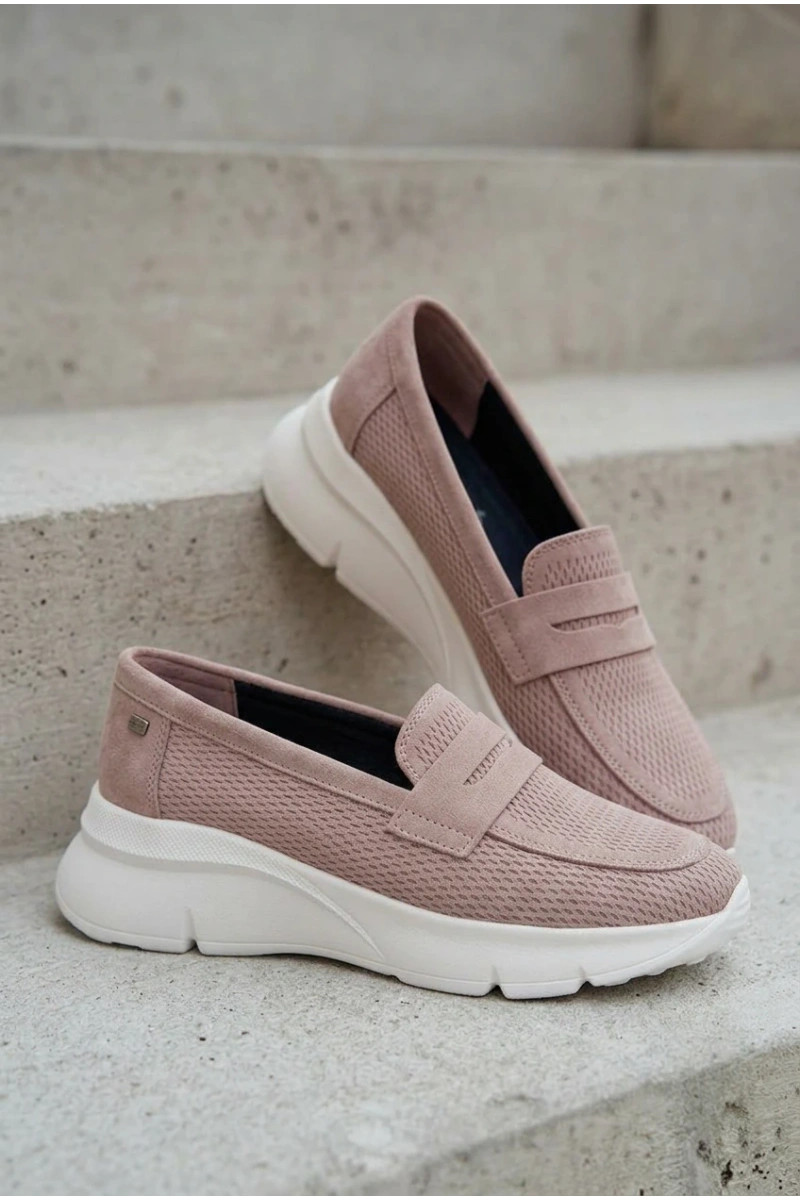 Mocassini da donna in camoscio naturale con piattaforma Vinceza 79626 color rosa