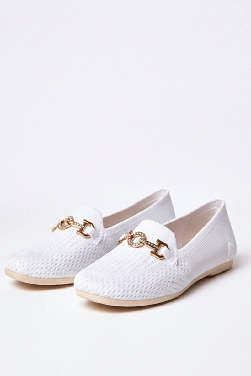 Mocassini bianchi in tessuto con decorazione dorata Mathilde