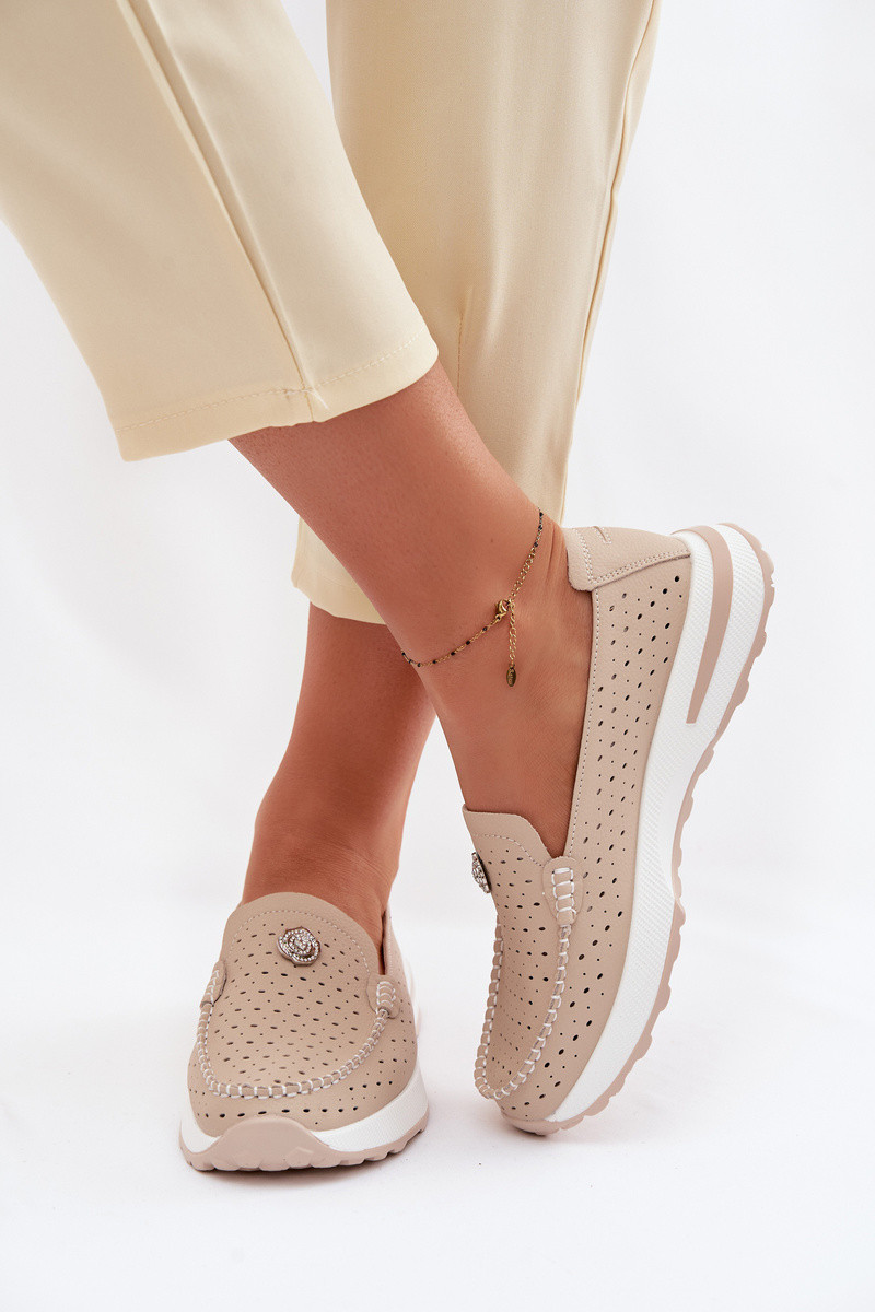 Mocassini da donna traforati in pelle Kemela color sabbia