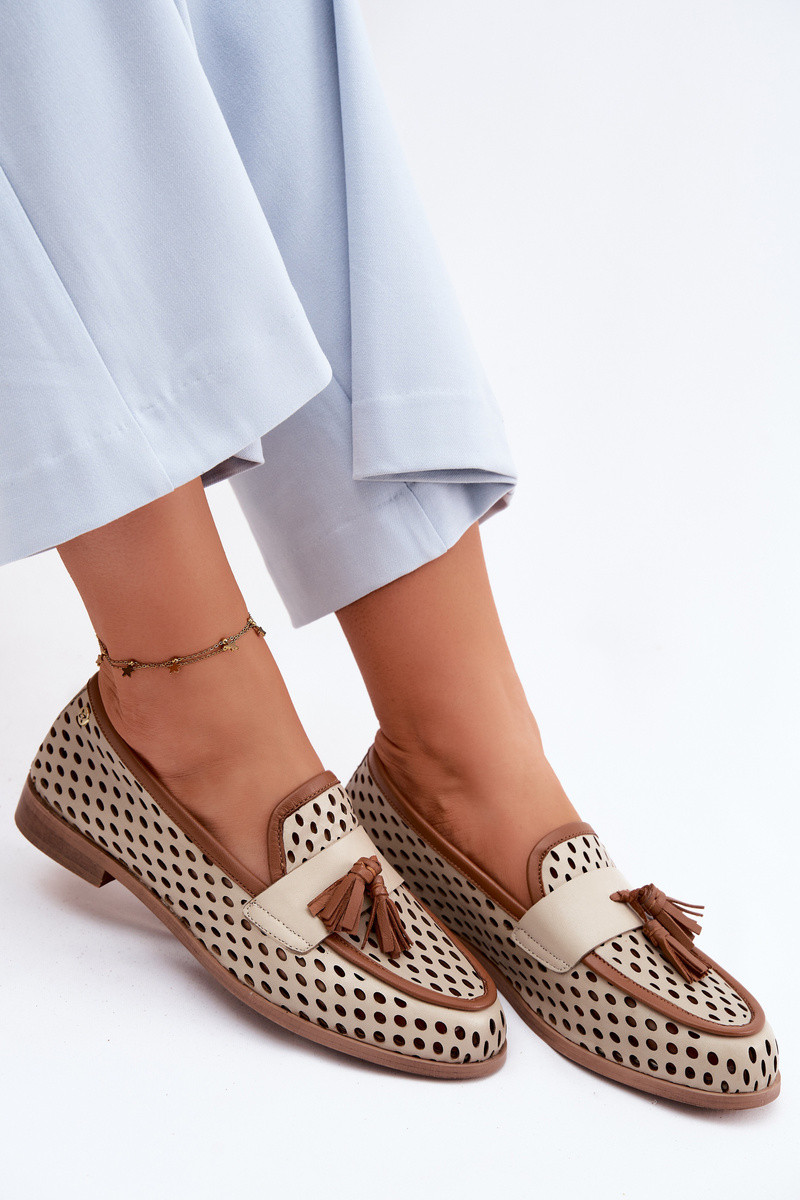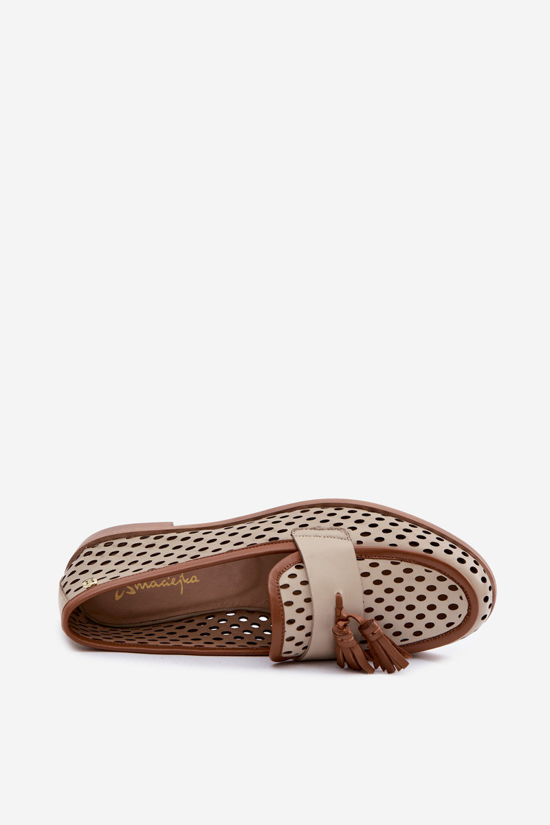 Pelle con elementi traforati scarpe mocassini da donna Deveciejka HJ760-14 marrone-beige