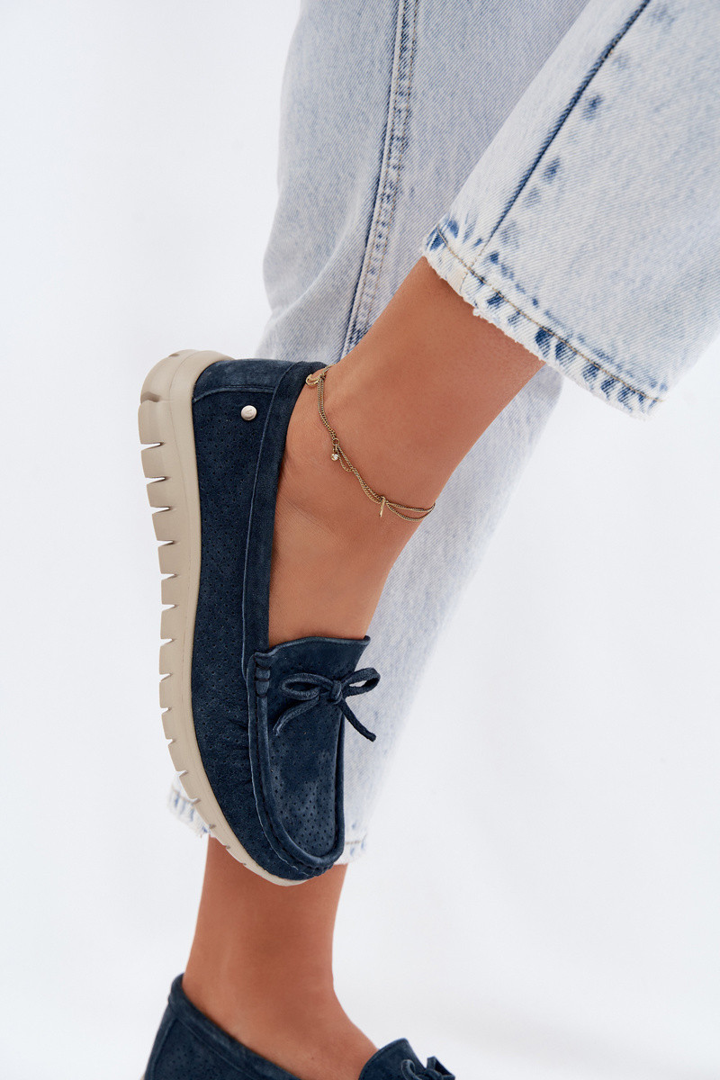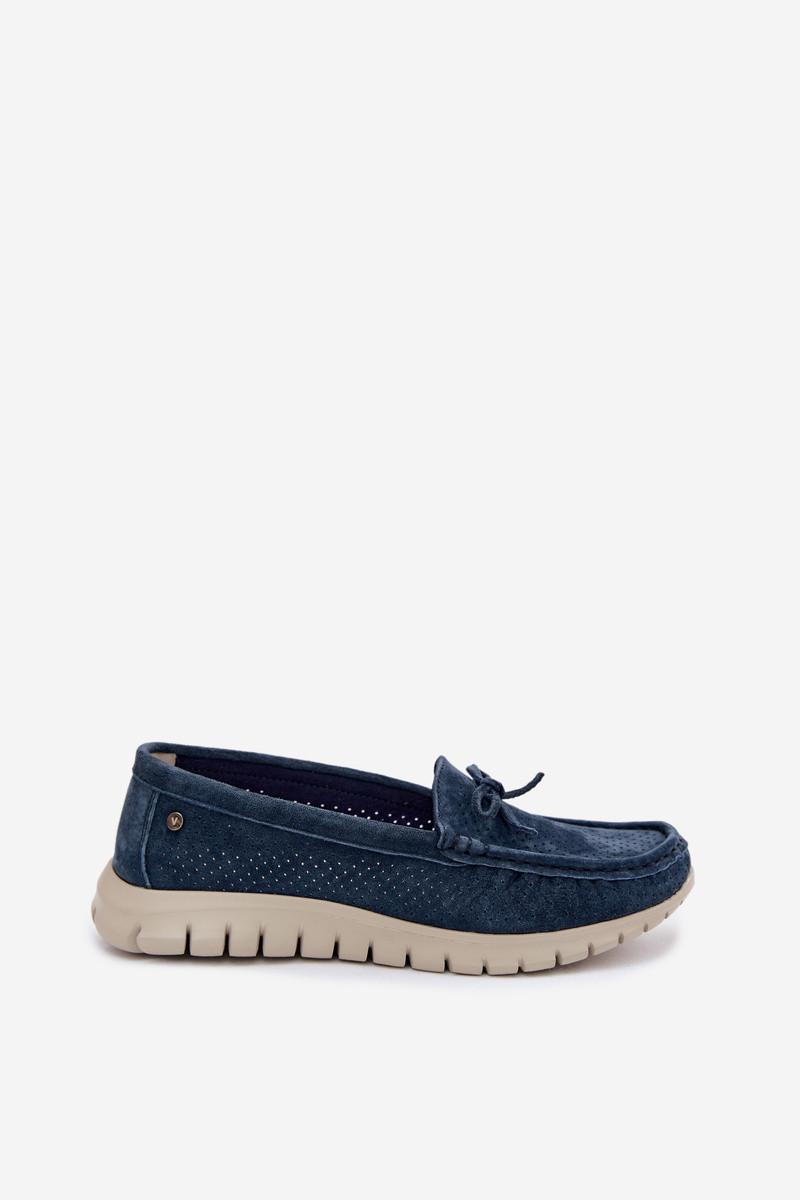 Mocassini in suede sintetico blu scuro da donna con fiocchi Vinceza 95401