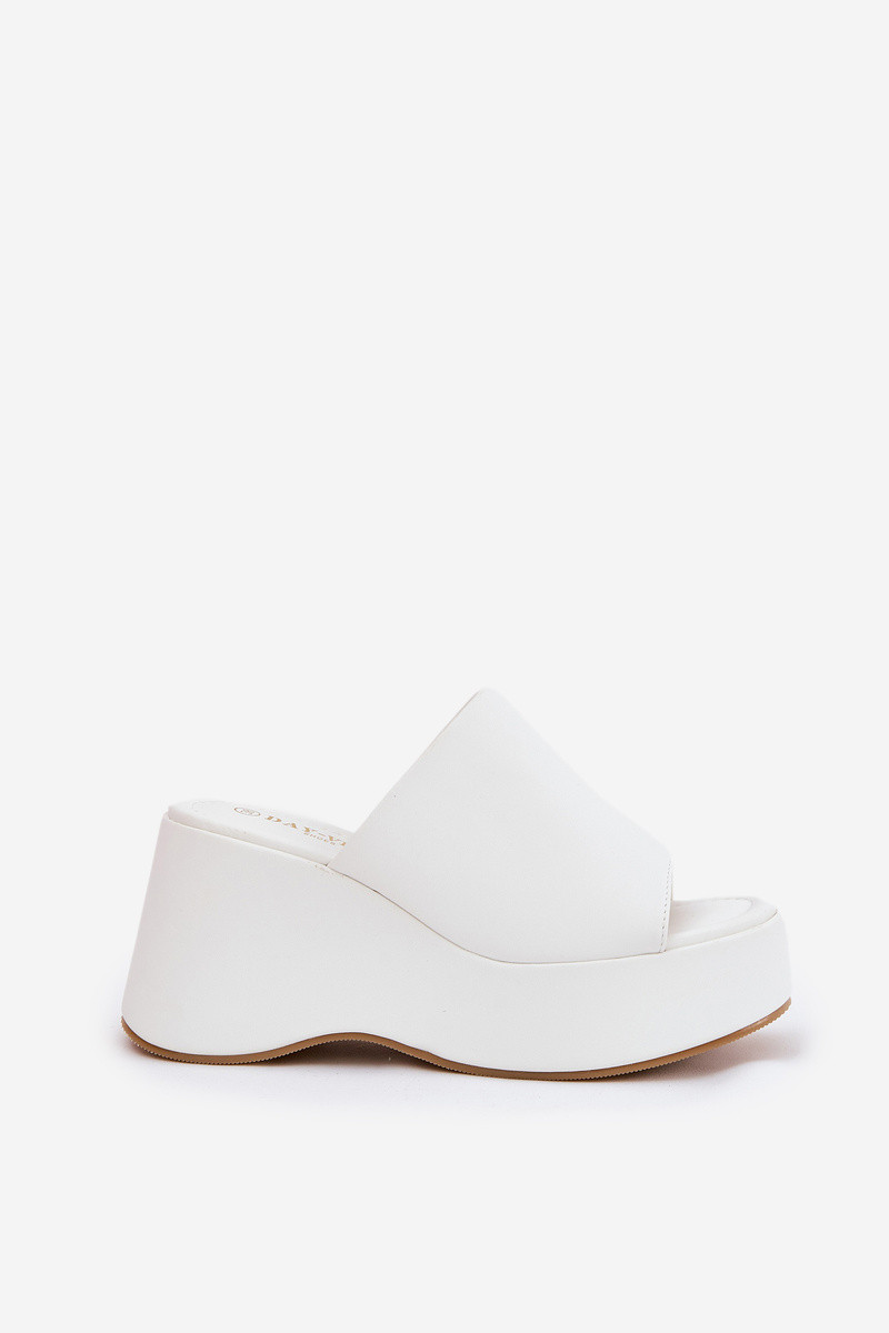 Pantofole in pelle sintetica da donna con piattaforma bianche