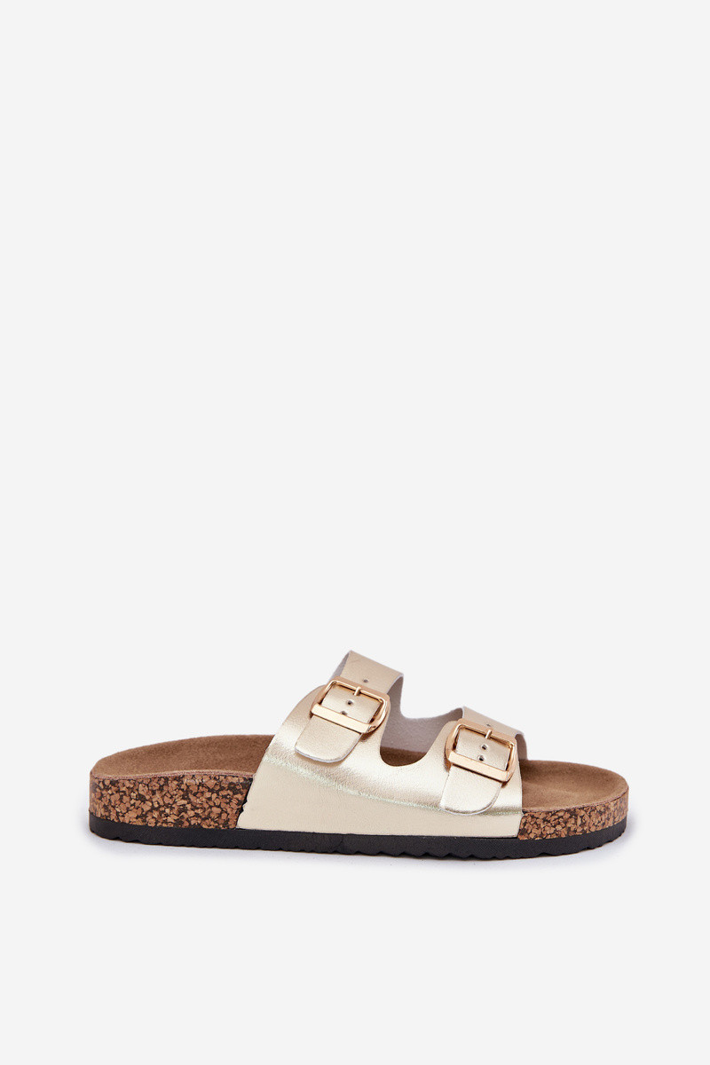 Pantofole in pelle sintetica color oro con fibbie Iskira