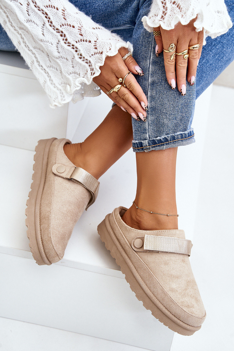 Femminile Pantofole riscaldamento con pelliccia all interno con una piattaforma beige Azida