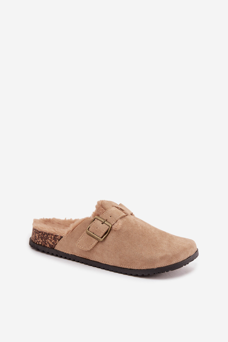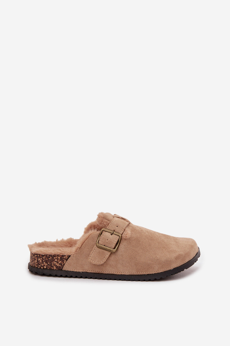 Pantofole zoccoli da donna, foderate con pelliccia interna e fibbie, colore sabbia Sylisse