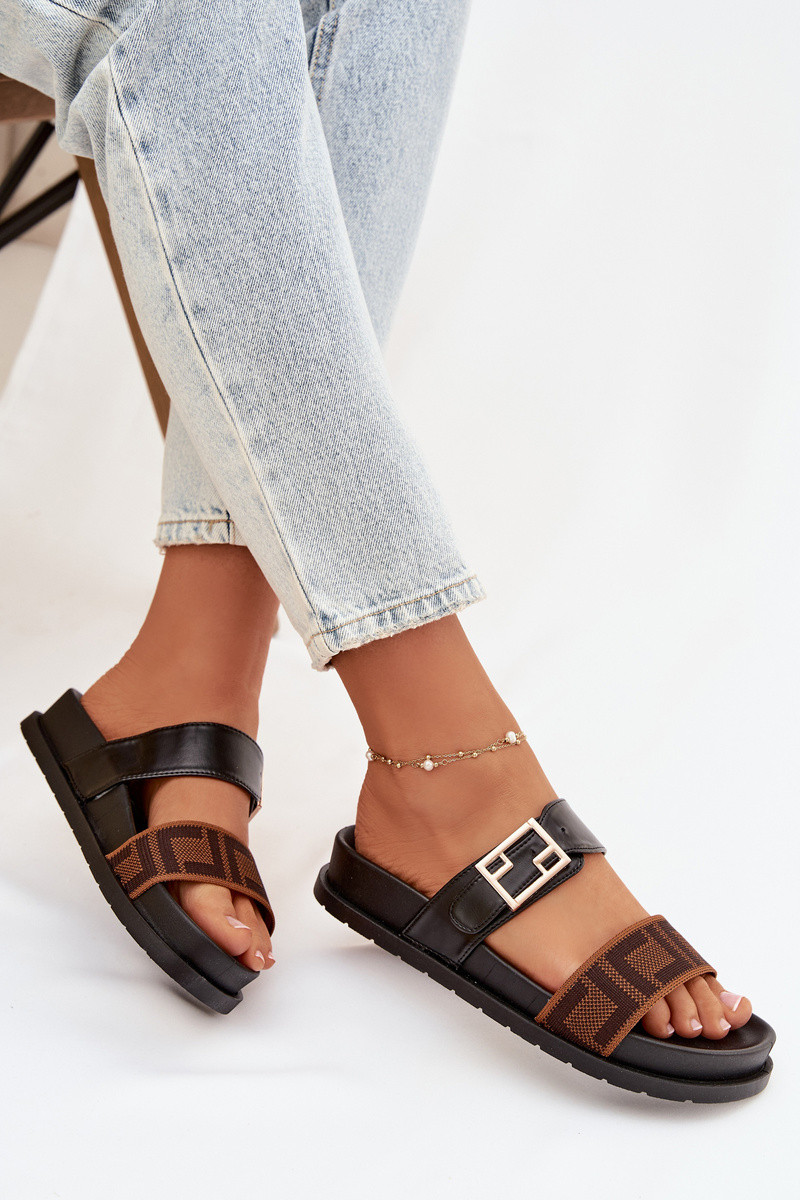 Pantofole da donna con fibbie dorate, colore nero