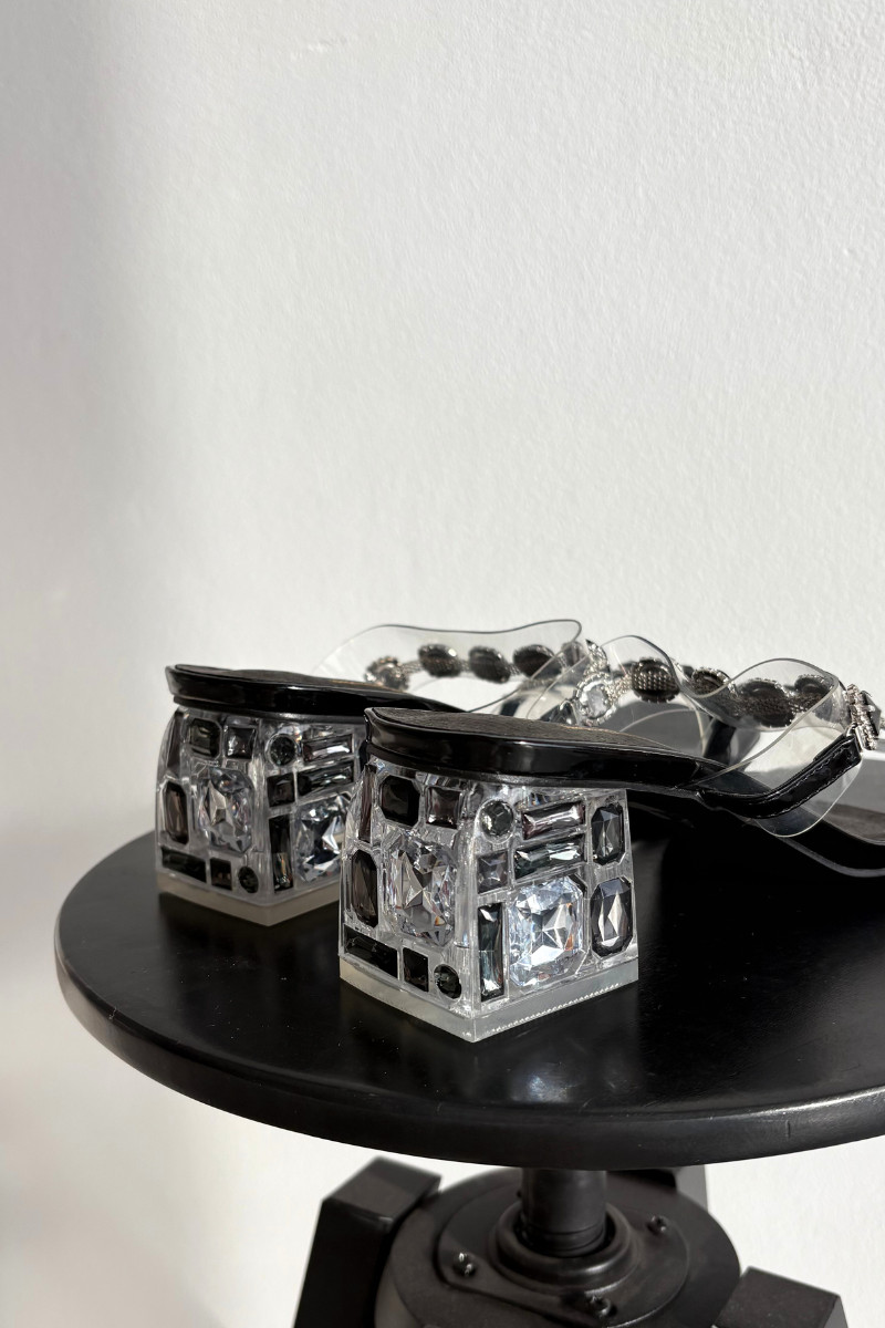 Ciabatte da donna con dettagli brillanti D&A MR1037-02, color nero