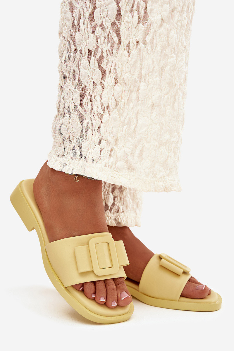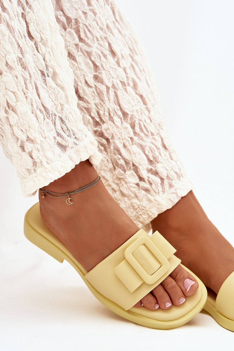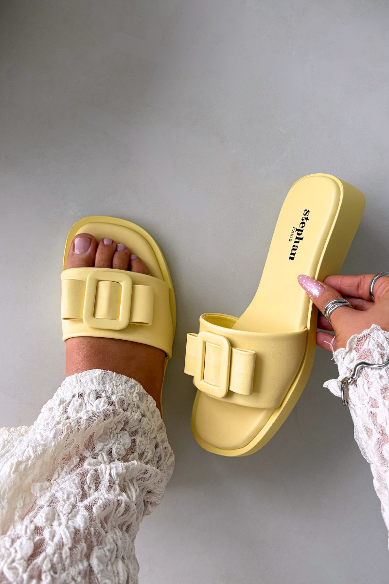 Ciabatte da donna gialle con tacco largo e fibbie "Melivra"