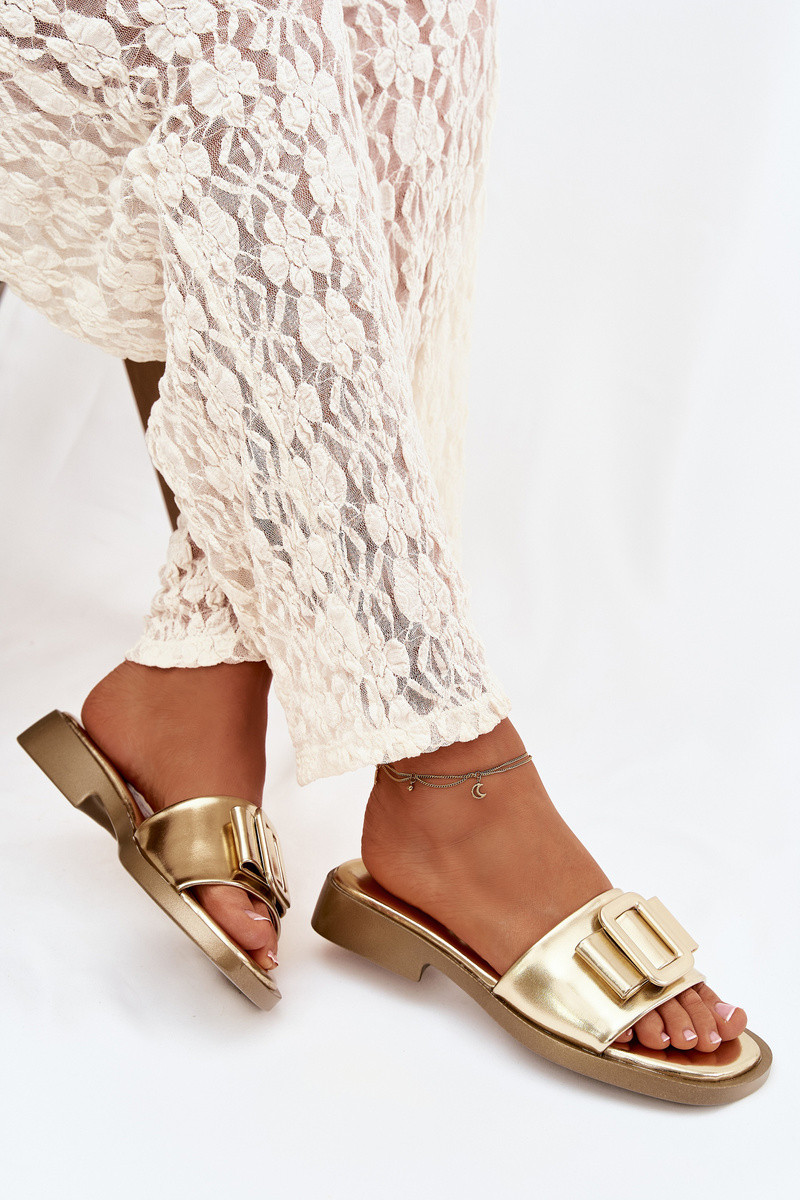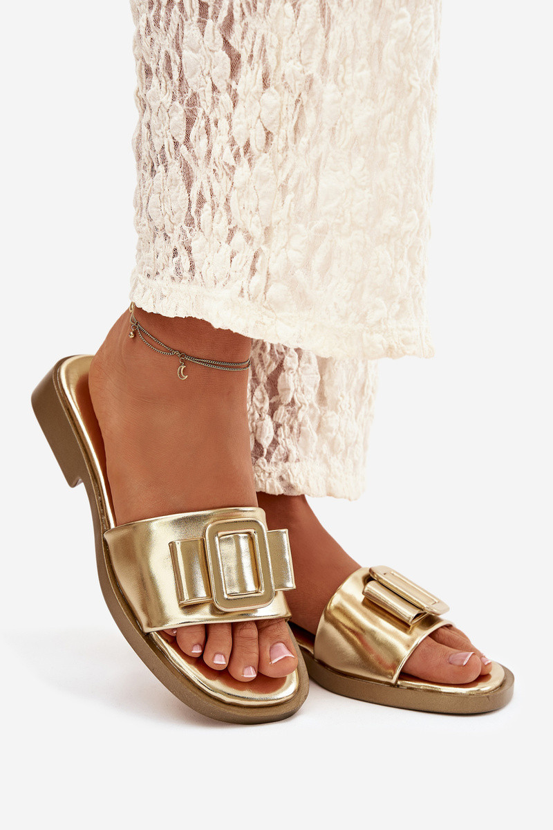 Ciabatte da donna color oro con tacco largo e fibbie "Melivra"