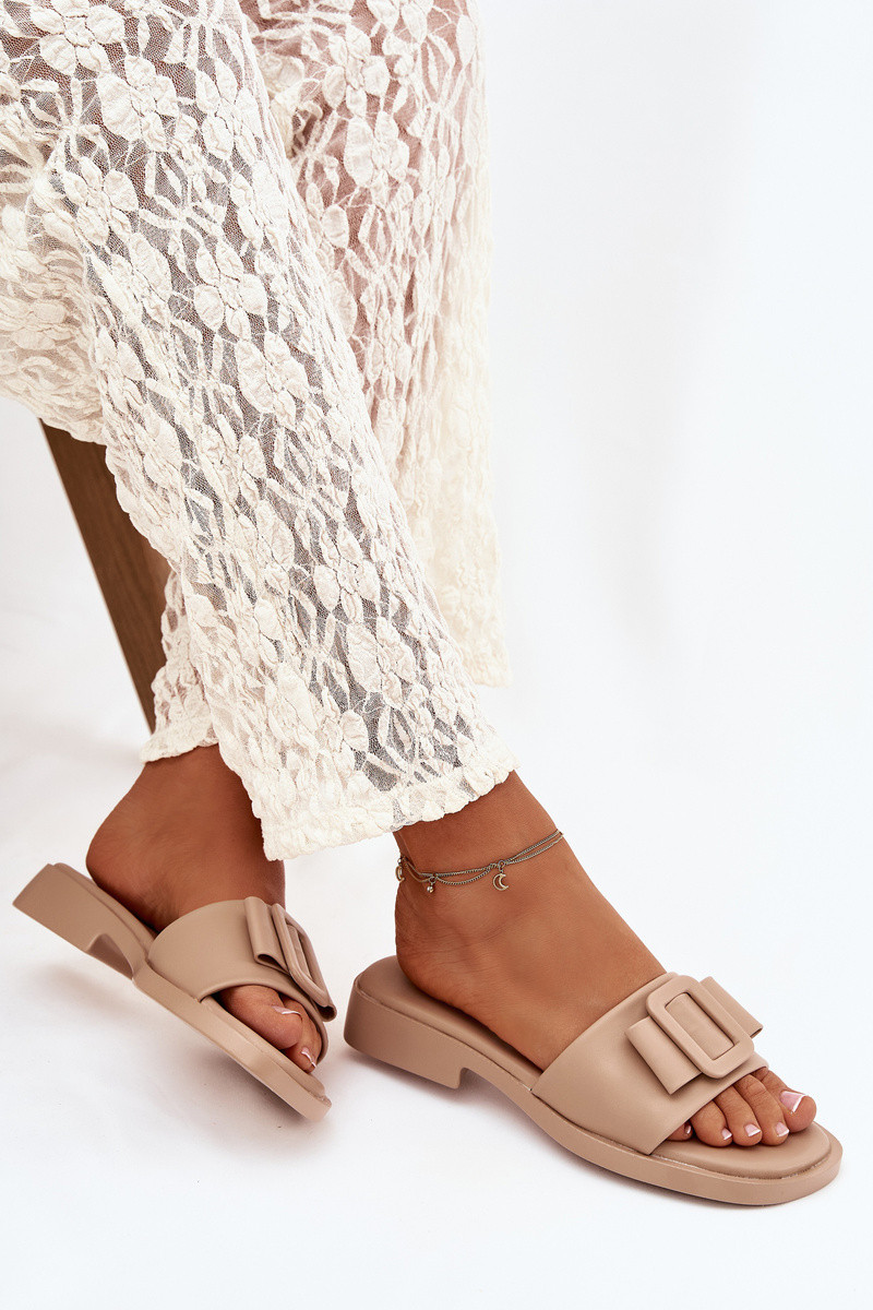 Ciabatte da donna color sabbia con tacco largo e fibbie "Melivra"