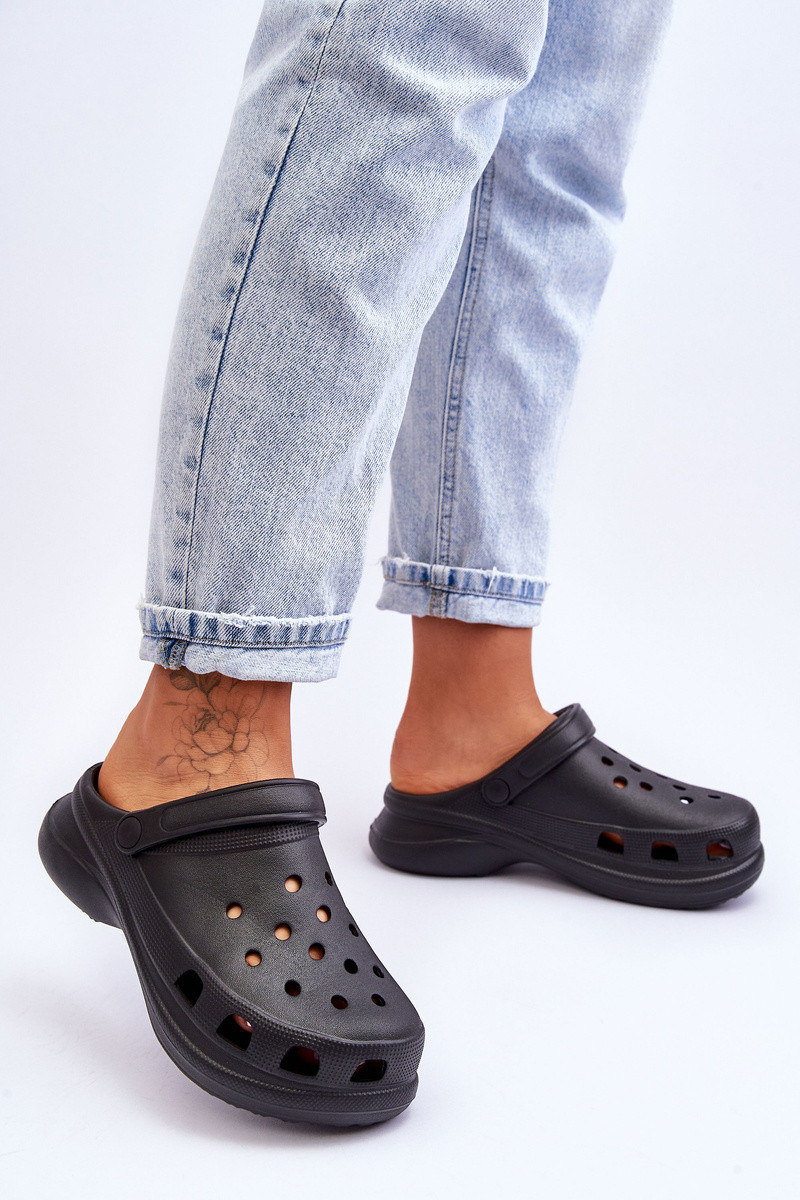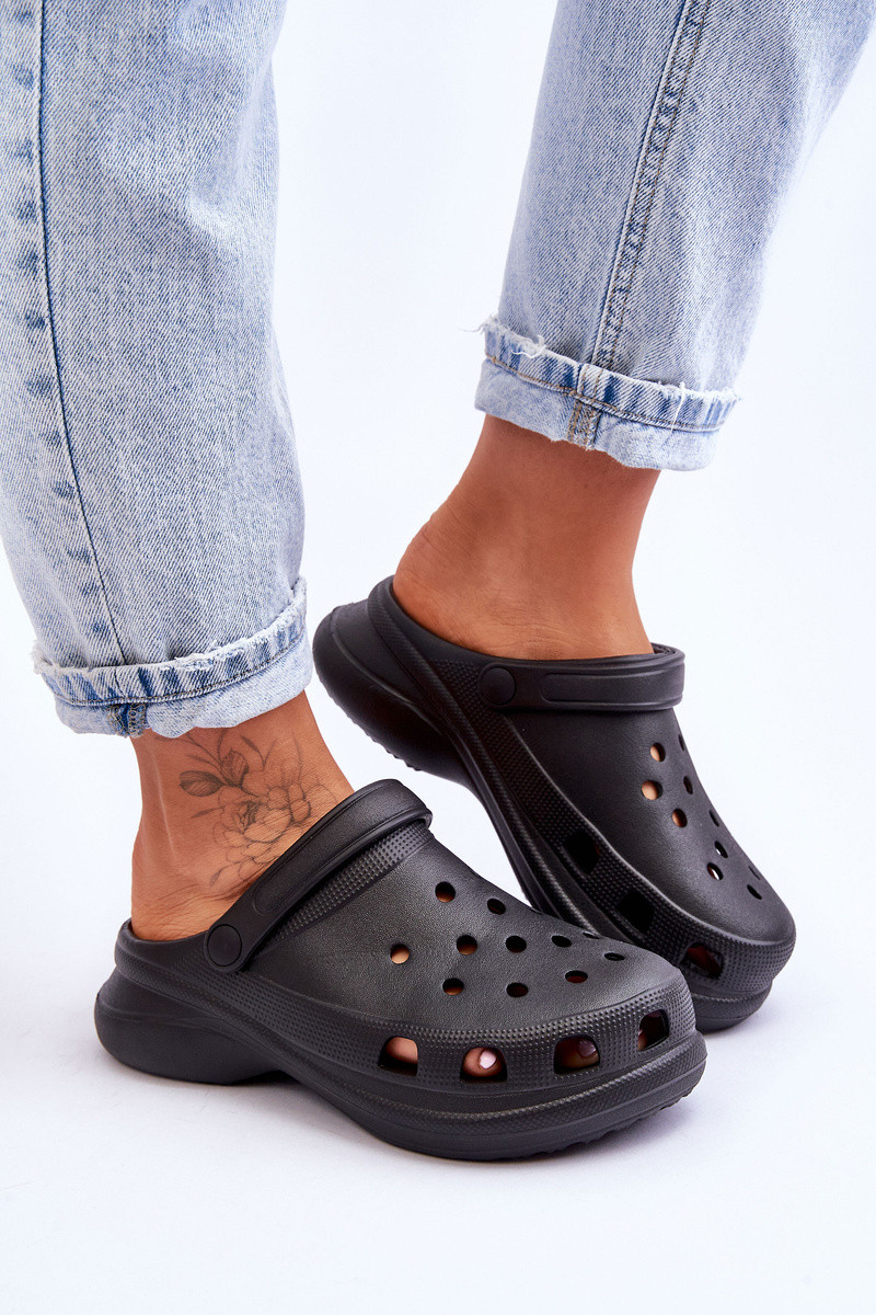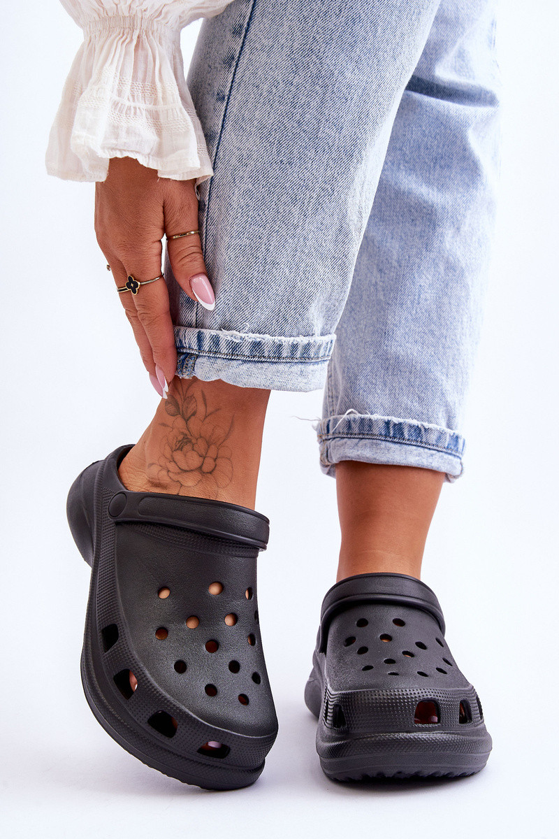 Pantofole in schiuma Crocs con suole massicce nere Katniss