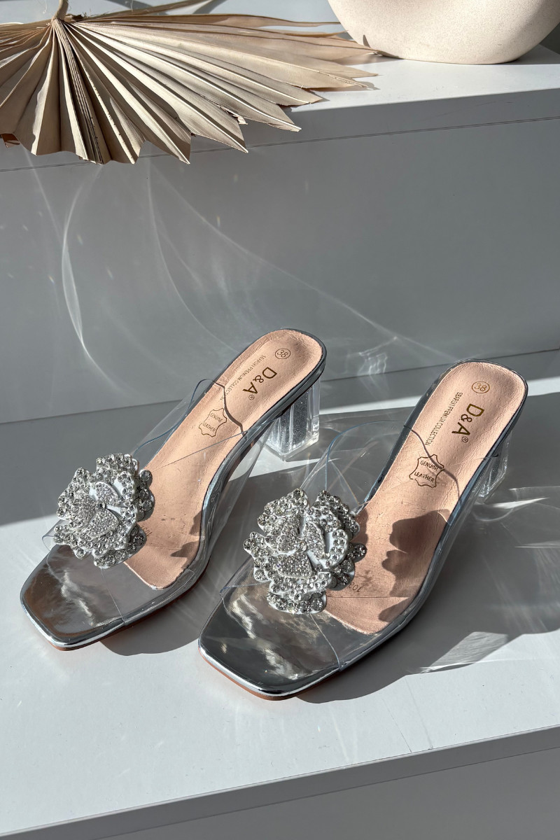 Pantofole argento trasparenti D&A MR1037-20 con tacco e ornamenti