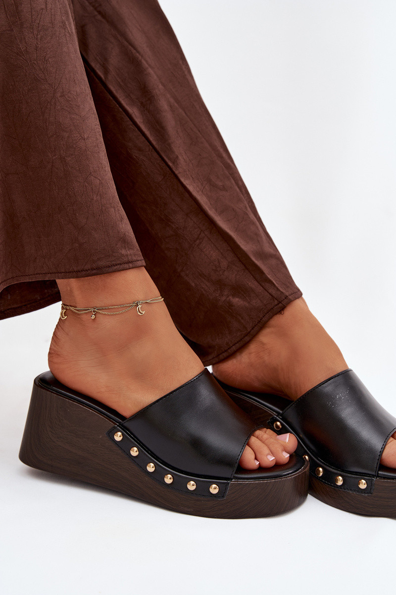 Pantofole da donna Su un cuneo Ze colore doratomi Borchie colore nero Arionne