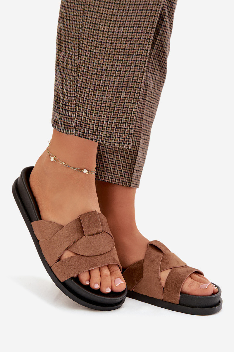 Pantofole da donna marroni in scamosciato sintetico con fasce Tai turirivessa